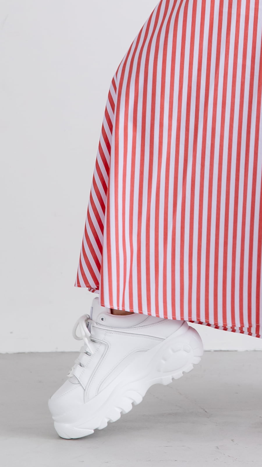 例えば#スニーカーも、厚底などのちょっとインパクトのあるものがおすすめ。子どもっぽくなると不安になるかもしれないけど、履いてみるとそれがちょうどいいアクセントになるんです。スポーツミックスは慣れないうちは難しいかもしれないけれど、そんな時はベルトやクラッチバッグ、ソックスなど、面積の小さいものから取り入れるのがコツ。難易度が一気に下がりますよ。