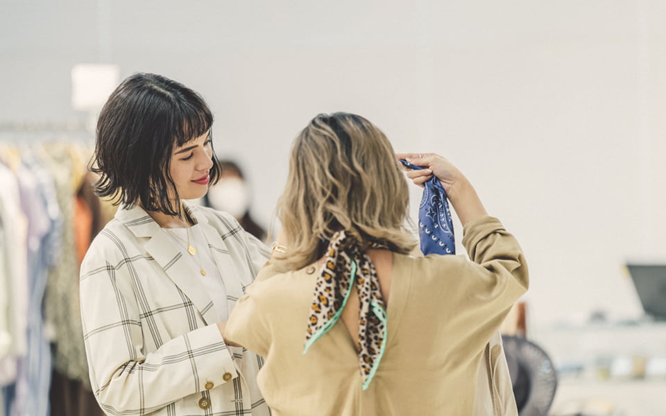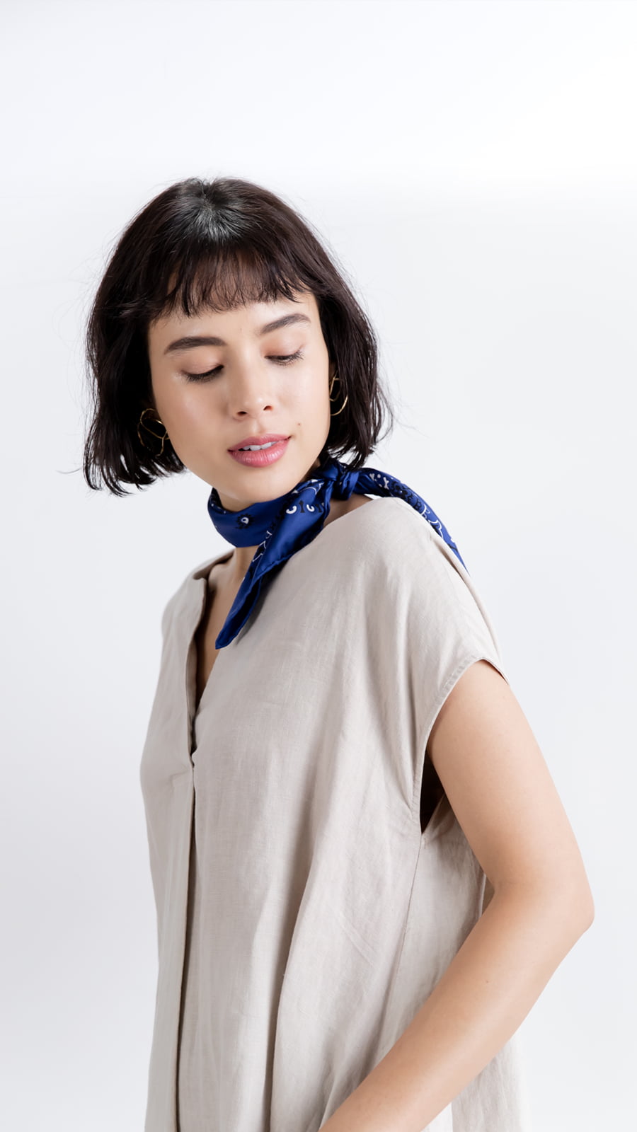 夏に大活躍しそうな素材感だけど、下に#タートルネックなどを仕込めば寒いうちから全然着られるはず。パンツを合わせても可愛いし、べルトでウエストマークしてもいいし、本当にいろいろなコーディネートが楽しめそうですね。ちなみに、こういうベーシックなカラーに、今日の#バンダナのようにちょっとだけ鮮やかな色をさすのが、簡単でおすすめのテクニックです!