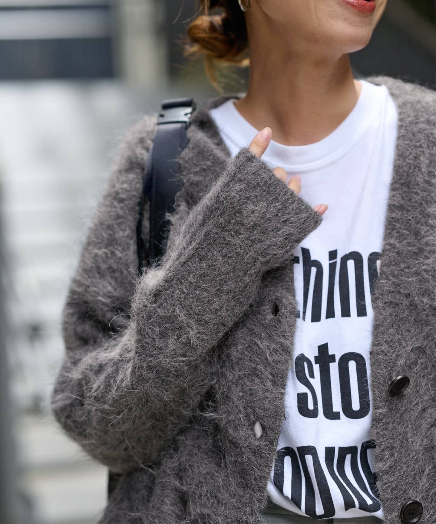 ふわふわもこもこカーディガン今年まずマストでストックしておきたいのがカーディガン。ふわふわ&もこもこのテクスチャーならさらに旬度が急上昇。ボタンを閉めてプルオーバー風に着こなすのが今っぽい。前後どちらでも着られるデザインもグッド