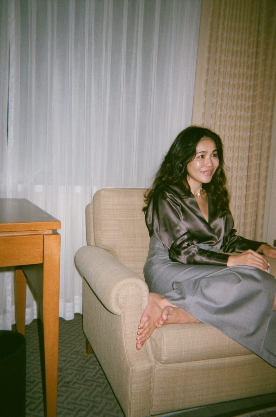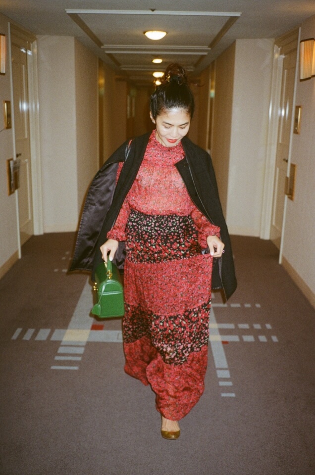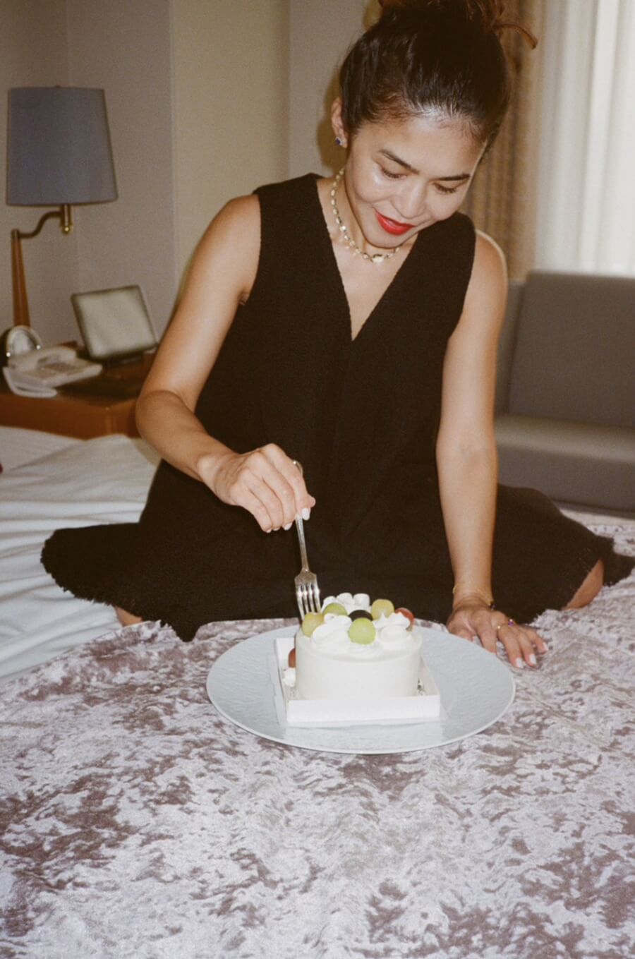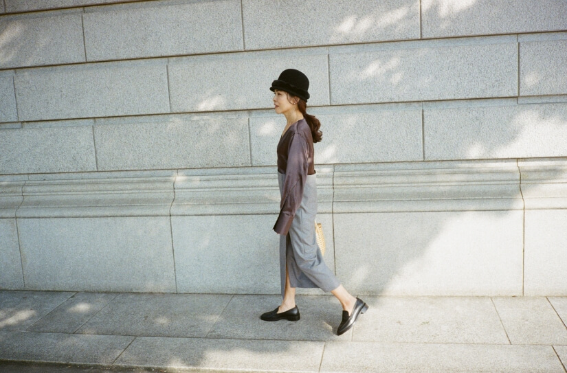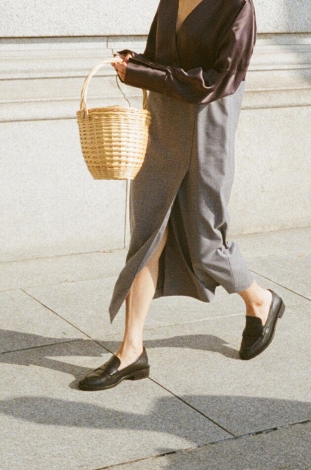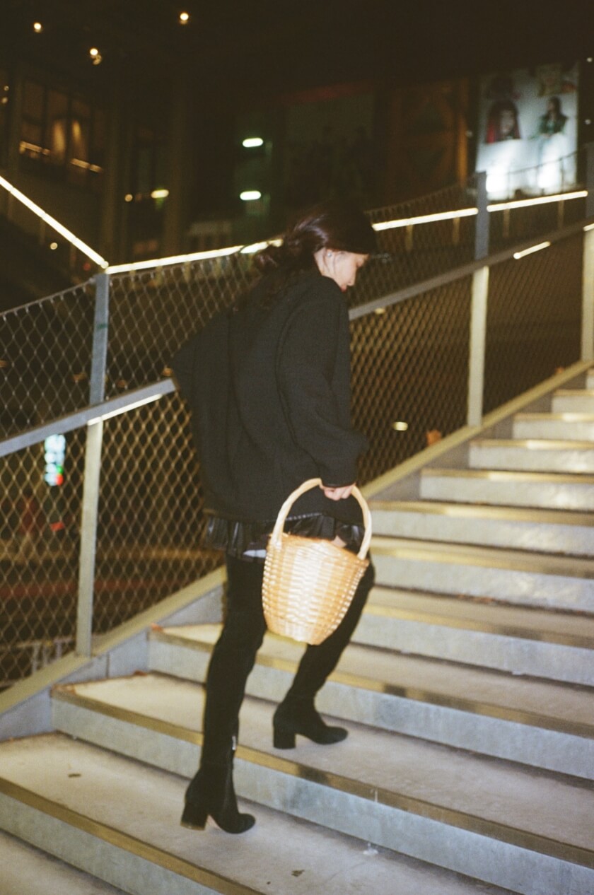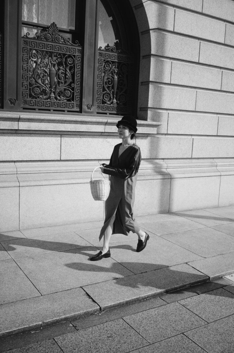 正直なところ、辻さんにカゴバッグのイメージはなかった。辻さんはいつもスタイリッシュで素敵なバッグを持っていたし、カゴバッグは対局にあるアイテムだと勝手に思っていたからだ。でも、それは間違いだった。フランスの籠ファクトリーに別注したバッグは、辻さんがサイズ感にこだわってオーダーしたもので、コーディネートに意外性をもたらすいいアクセントになっていた。その要因は、トレンドに関係なく、自分が好きなものを素直にコーディネートに取り入れる、そんな自然体の辻さんの芯の強さだと思う。現像したラストカットを見て、改めてそう感じた。