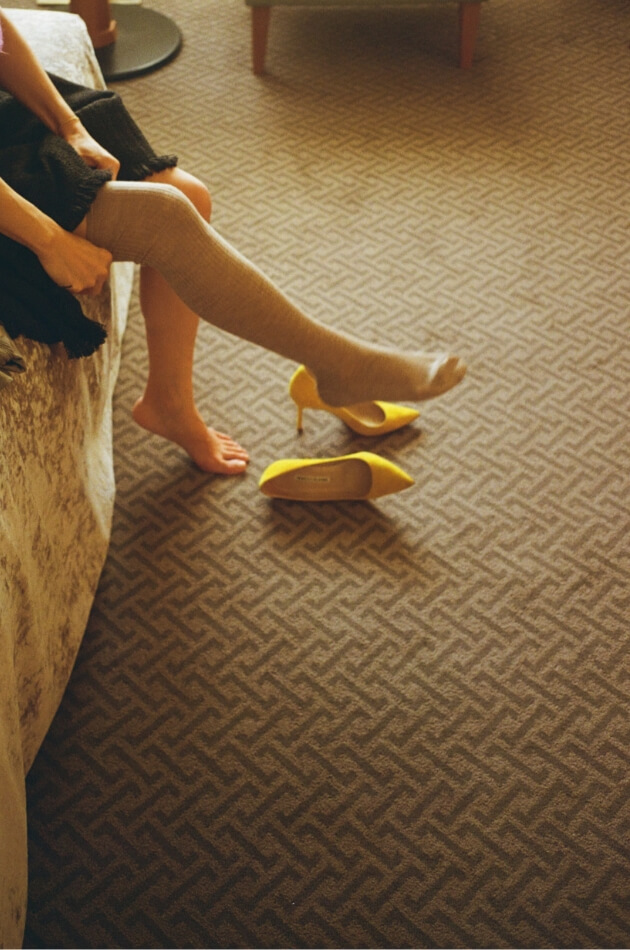 性別問わず、素敵なソックスを履いている人はお洒落だと思う。逆を言えば、ソックスがイマイチだと台無しになってしまう可能性がある。辻さんが選ぶ決め手は、素材だという。ハイブランドのアイテムも数多く手がけるイタリアの高級ソックスブランド、BRESCIANIで選んだのも、カシミアを贅沢に使ったカシミアシルクのニーハイソックス。すべて自社工場で製造されるソックスは、一足仕上げるまでに12回ものクオリティチェックを行う徹底的ぶりで、足を綺麗に見せるリブ感や透け感の程よいバランスも絶妙で気が利いている。やはり、素材のいいソックスはシックな女性によく似合う。