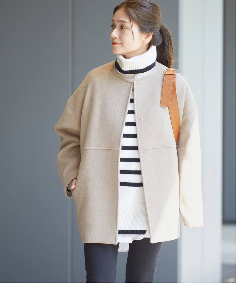 コーデを格上げする上質ウールの大人コートIENAのモッサーダブルフェイス Vネックコートはハイクオリティなウールの名産地、愛知県尾州産の上質素材を贅沢に使用。インナーのバランスをとりやすいVネックが◎。JOURNAL STANDARDでは、上品なツヤが魅力のウールを使ったスーパー140ビーバーノーカラーショートコートが登場。