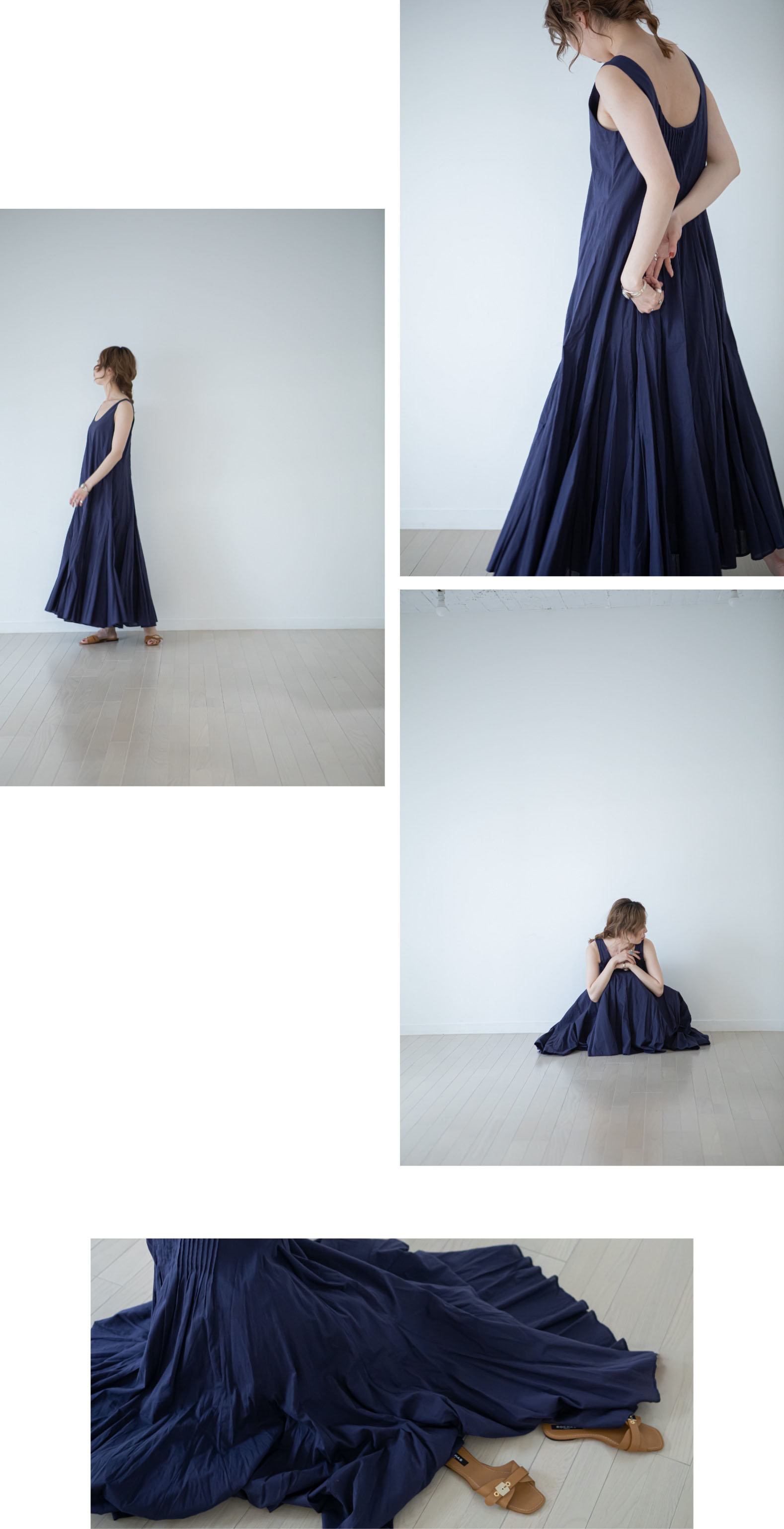 程よいV開きのデザインに裾にかけての落ち感が品良くまとまるドレス