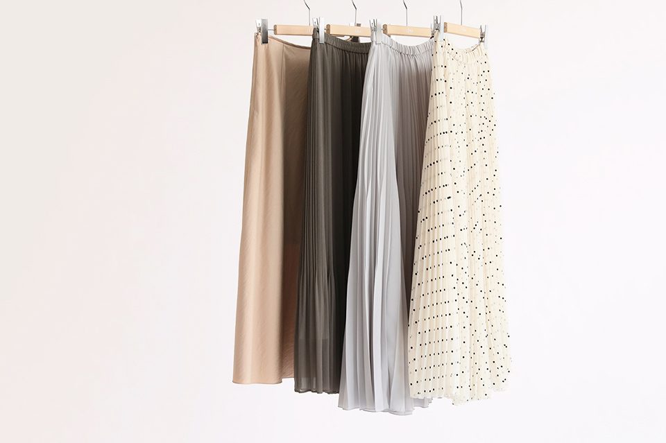 各メディアで取り上げられてる軽やかなスカート。IENAにも種類豊富に入荷しています!