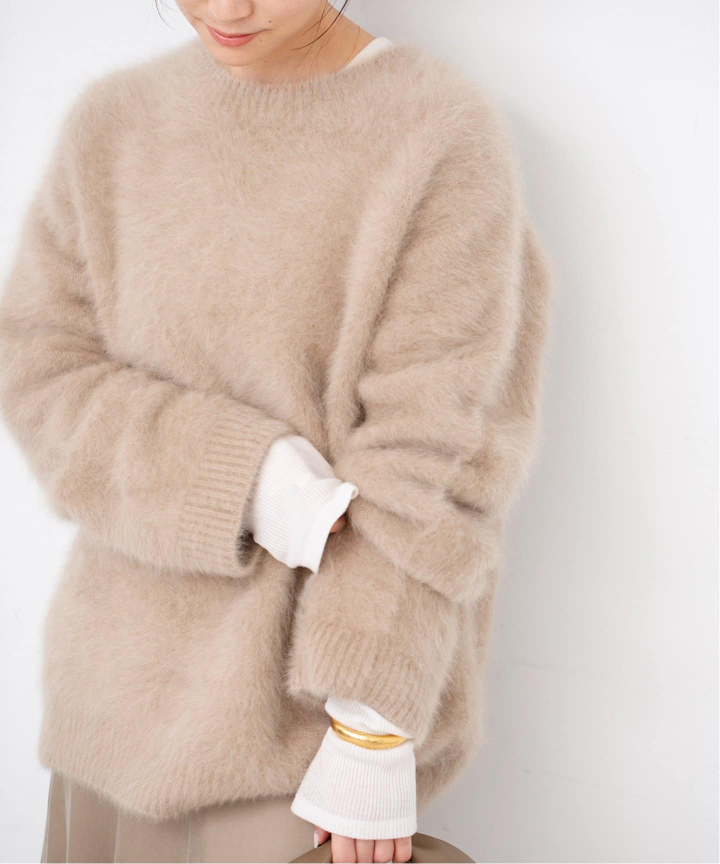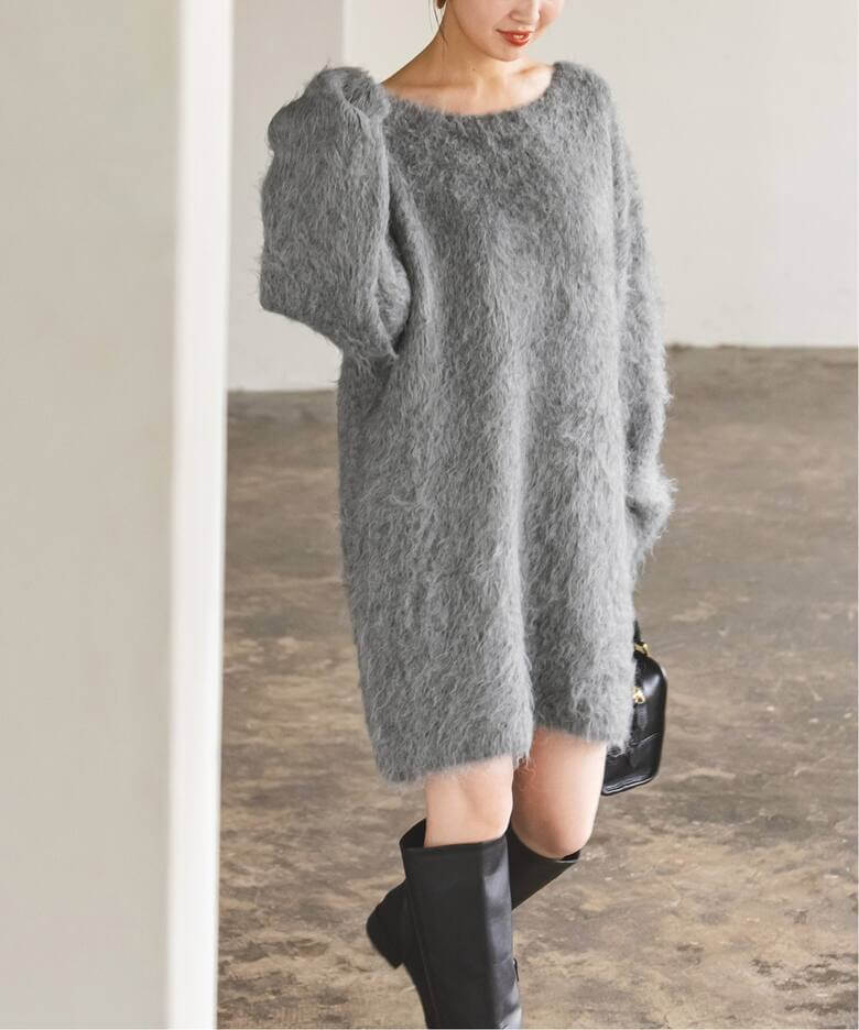 一点投入でサマになるふわふわ&もこもこに夢中!ぐるっと一巻きするだけで着映えて暖かい、モヘア混素材をたっぷり使ったDeuxieme ClasseのMohair Mix Big Stole。女性らしい抜け感とニュアンス満載のNOBLEシャギーニットミニワンピースは、ワイドパンツをつないだ着こなしもおすすめ。