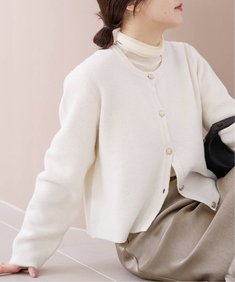 ニットが出番。今年らしい表情を楽しんで防寒を意識する気温には冬ワードローブの鉄板、ニットが頼りに。見た目にも暖かく大人可愛い雰囲気をたっぷり盛れるフォックスカシミヤプルオーバーやアームウォーマーつきニットで、お洒落と寒さ対策を両方叶えて。