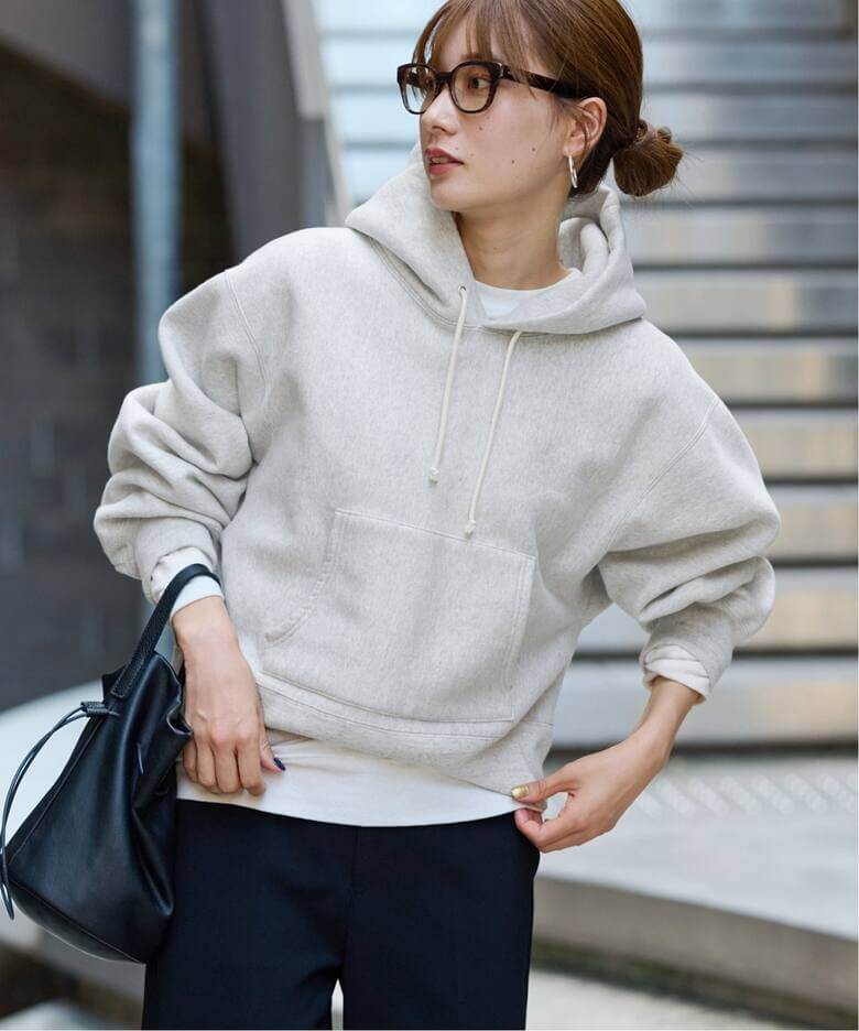 メンズライクなスウェットでこなれさせてちょっぴり肌寒さを感じつつも外で過ごすのが心地よい気温。ばさっとかぶって即サマ見えして暖かいスウェットやフーディーがグッドチョイス。アクセサリーや小物使いで女っぽさをトッピングして。
