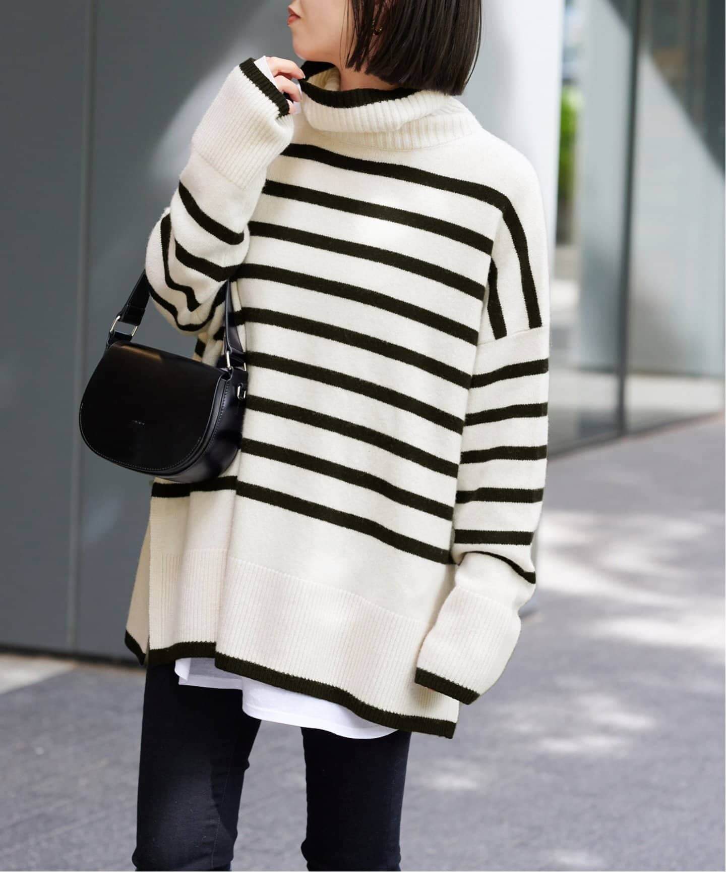 今っぽいボリュームが大人可愛いニットボディラインを拾わないドロップショルダーのゆるさが可愛いIENAのAQUAハイネックプルオーバーは、短めの着丈も今年らしい。JOURNAL STANDARDのMUSICハイネックプルオーバーはポンチョのようなフレアシルエットが洒落感を高めるデザイン。