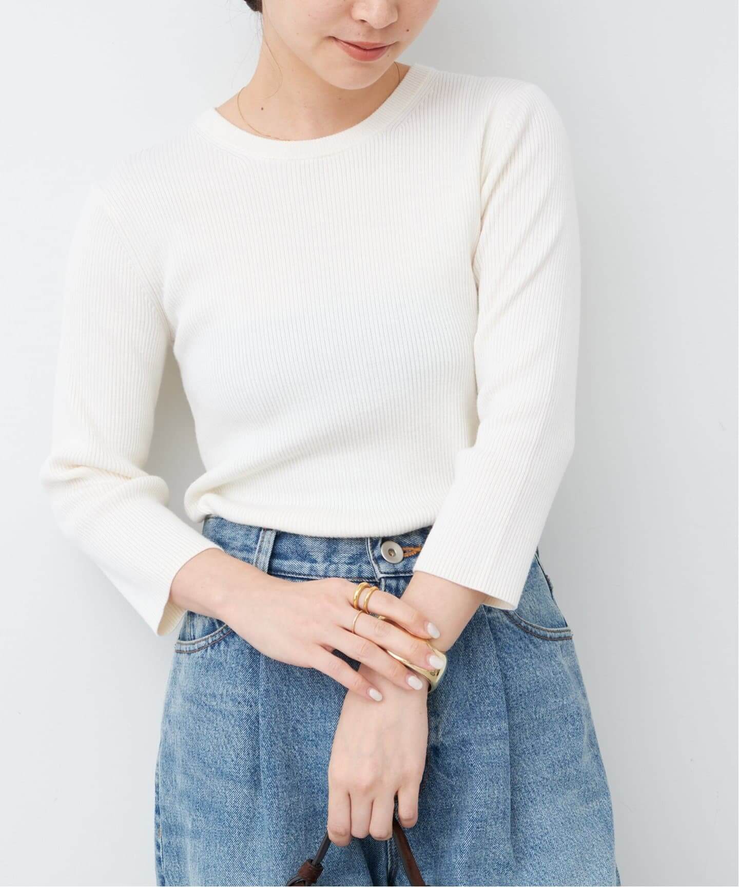 アウターの中から主張するデザインニットロゴがこなれた印象を引き寄せるSpick & SpanのESSENCEロゴKNITや、シンプルなクルーネックだけど映えるカラーラインナップのFRAMeWORKカシミヤ混ポパイクルーネックプルオーバー。1枚あるとコーデの主戦力になっておすすめ。