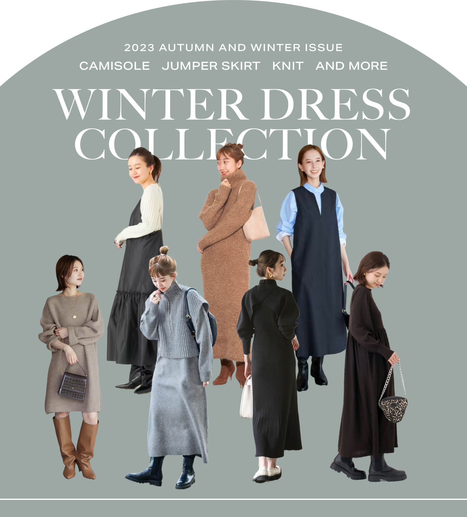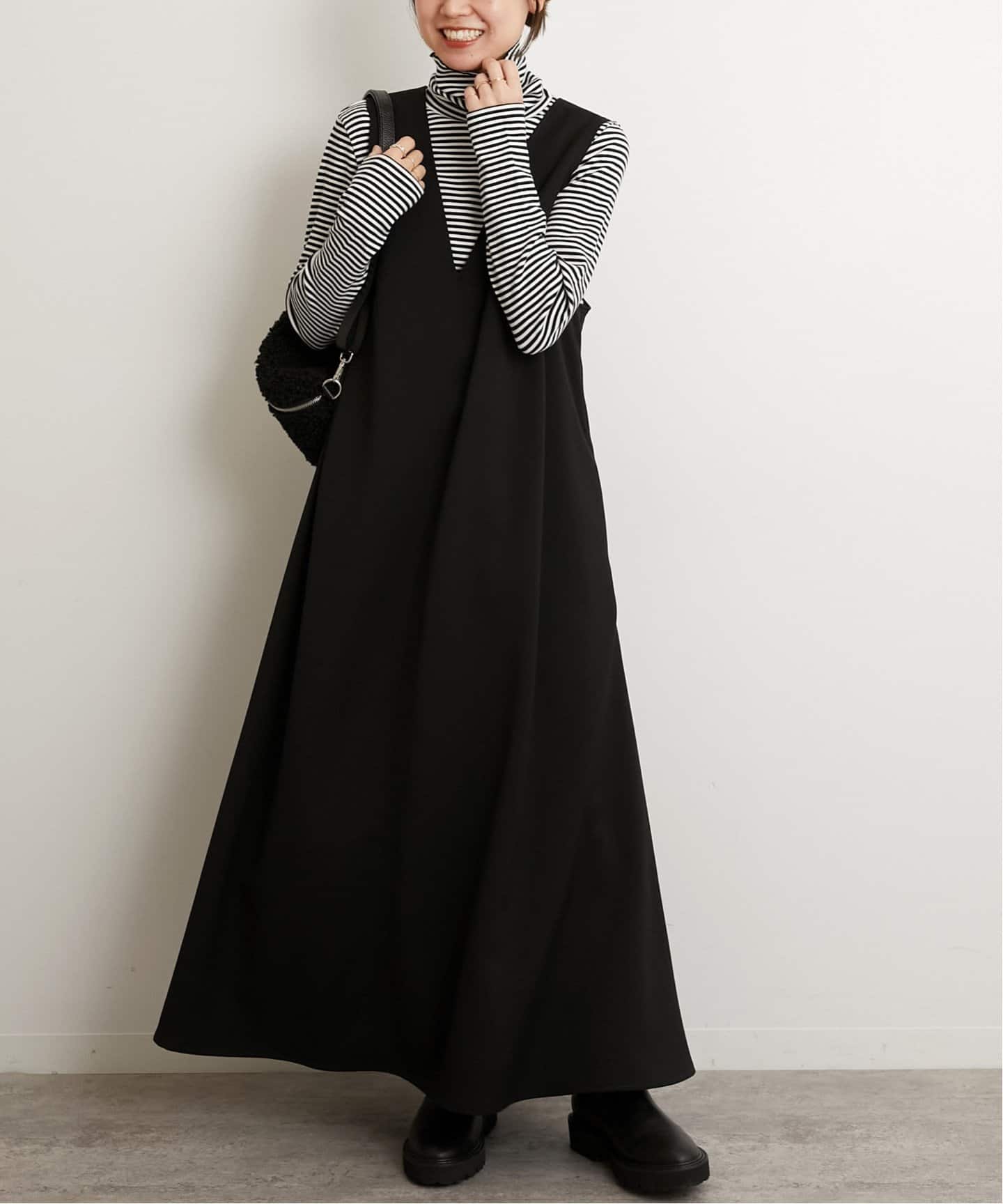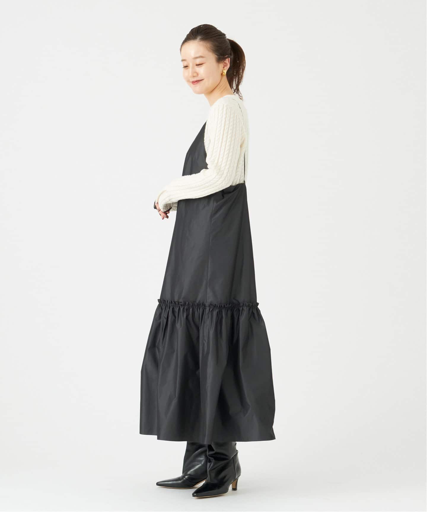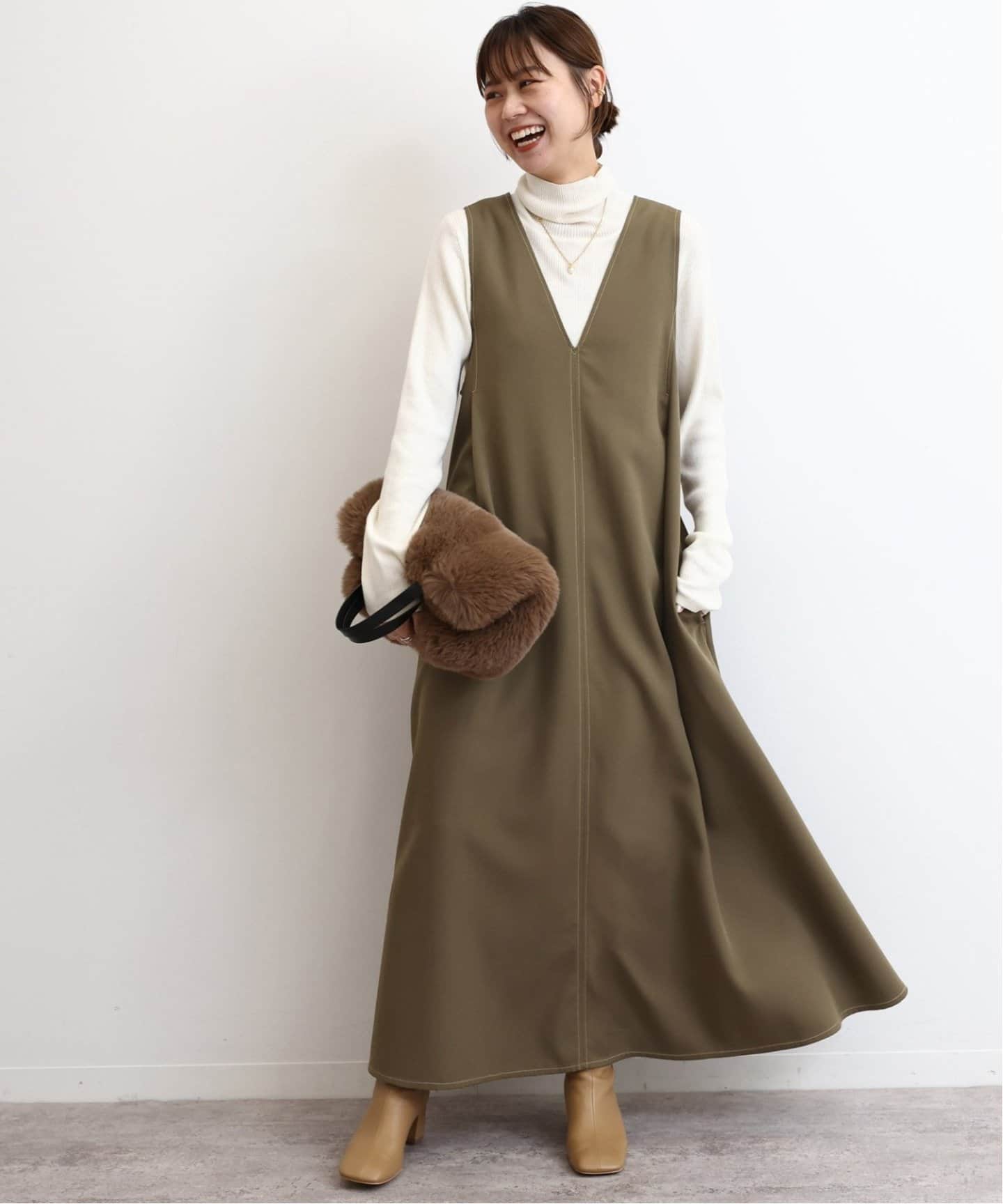 ワンランク上の冬コーデにタートルネックニットや暖かトップスをインすれば真冬も活躍するキャミワンピース。ギャザーを寄せてフェミニンに広がるフレアシルエットが、重たくなりがちな冬コーデに女性らしい軽さをプラス。