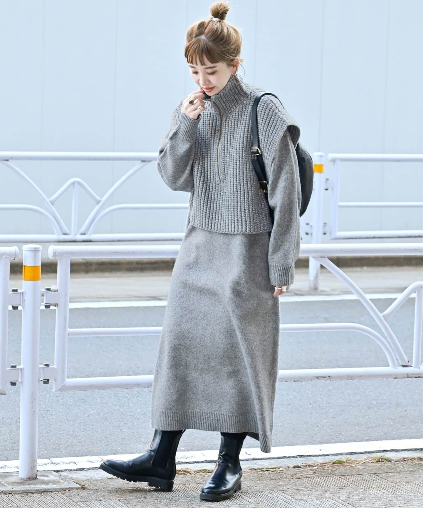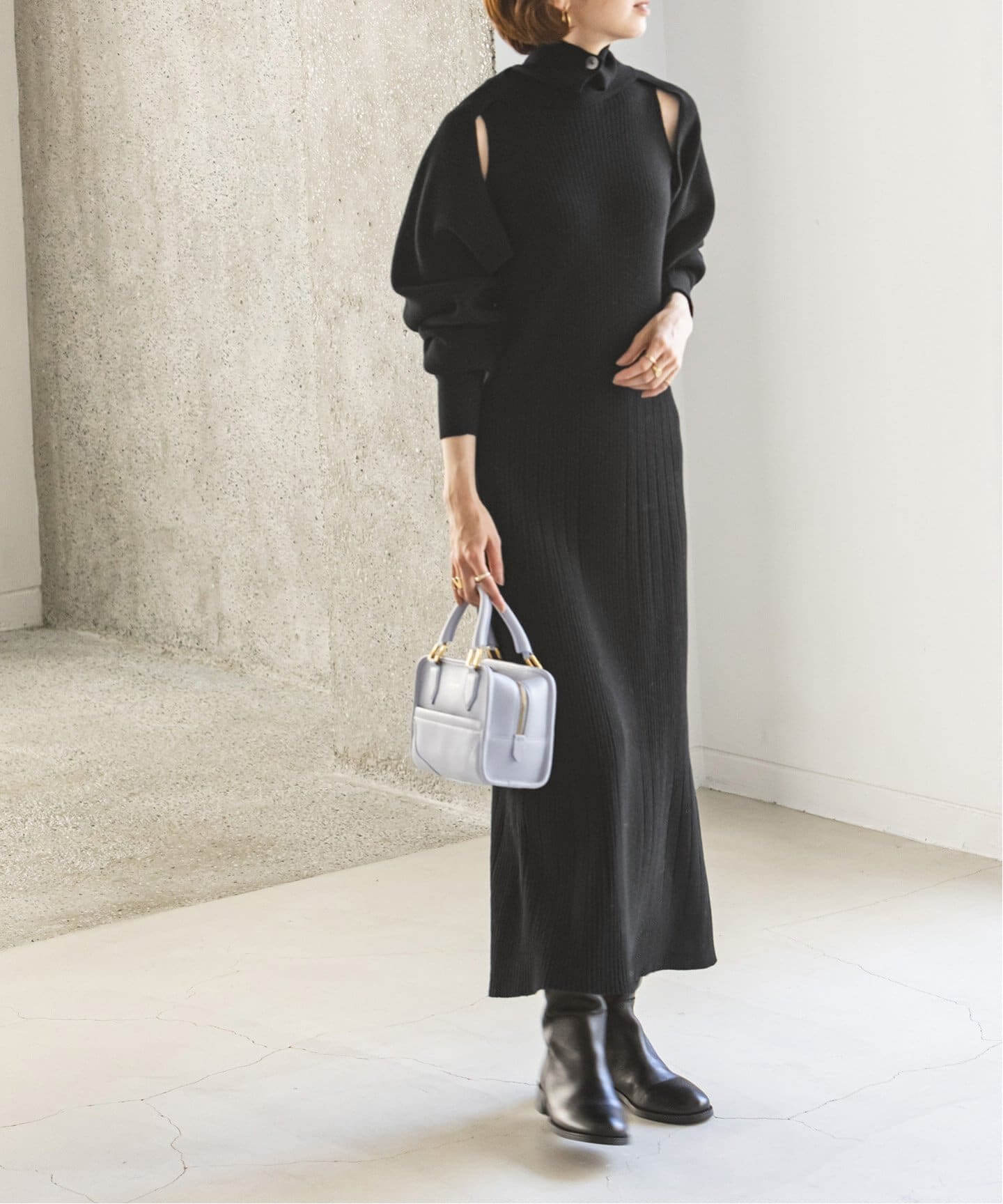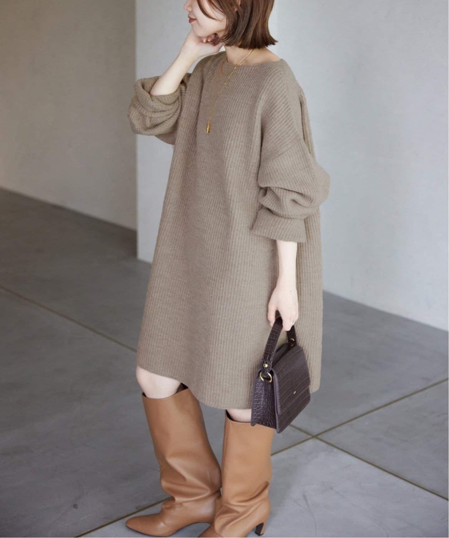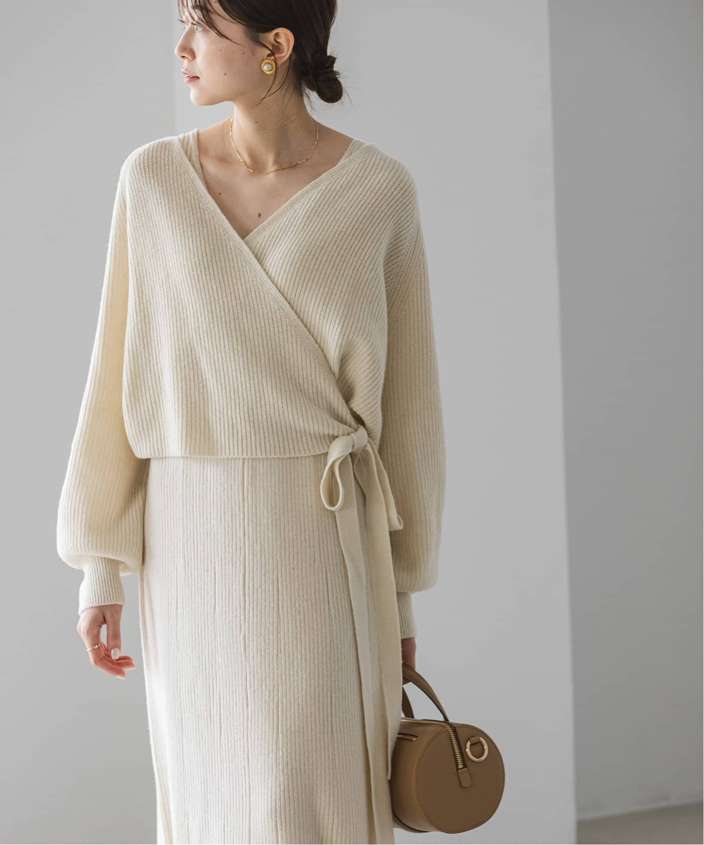 最旬ニットワンピースバタバタ忙しい朝、一枚でコーデが完成するニットワンピース。ハーフジップやパフ袖、ブークレ素材といった今年らしいエッセンスが入ったデザインが狙い目。鮮度を高めるならSLOBE IENAのファインウールニットミニワンピースがおすすめ。