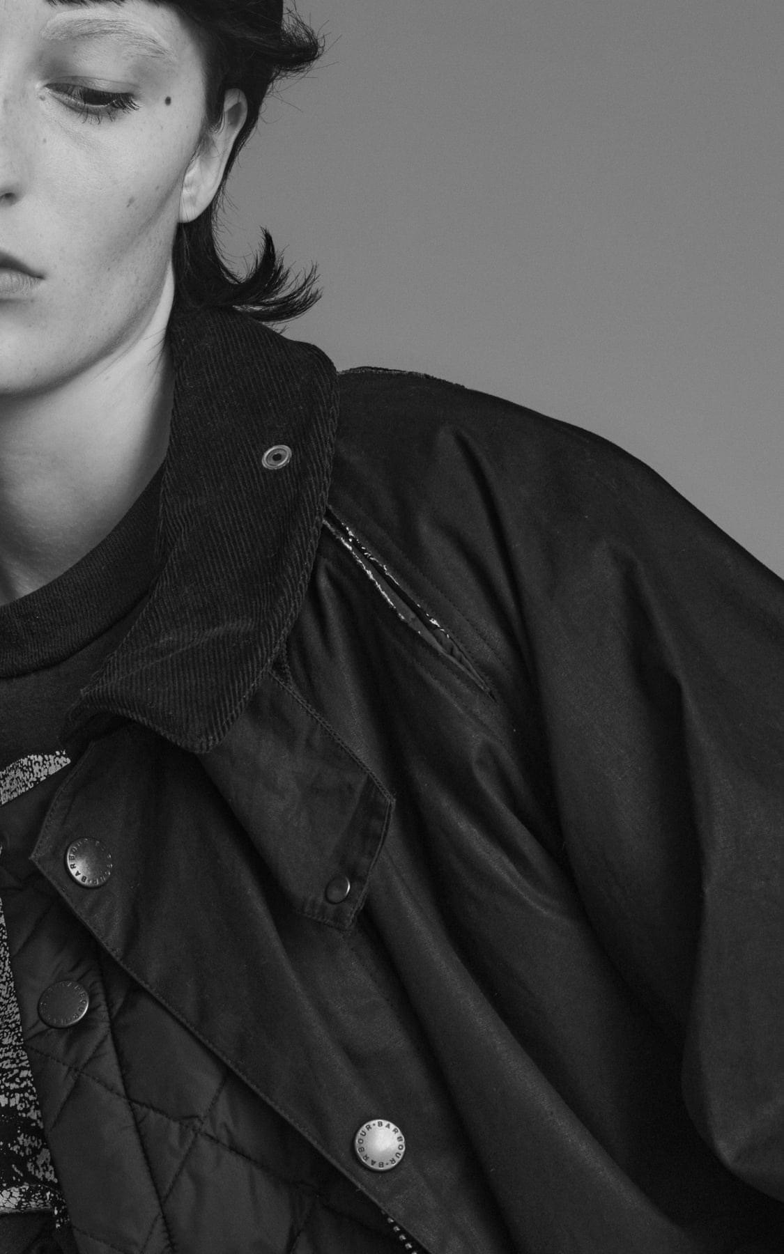 ファッションにおける“Avant-garde(アヴァンギャルド)”とは、その名の通り前衛的であり、革新的な芸術を指す。飽和したシーンにおいて、そのビジュアルは一線を画し、見るものの好奇心を駆り立てる。このワードを抽出し、YOKEとJOURNAL STANDARDが手を取り合って、第三弾となるBarbourとのコラボレーションが実現。今回リリースするのは6WAY着用できるコート型タイプのBURGHLEY、SpeyとLiddesdaleのエッセンスを掛け合わせたキルティングジャケットの2型。裏面のチェックをあえて表にしたギミックや剥き出しのキルティングといった実験的なディテールはまさにエポックメイキング。現代の横行するありふれたデザインに抗い、反骨精神のもと生まれた2つのプロダクトは強い意志を示している。