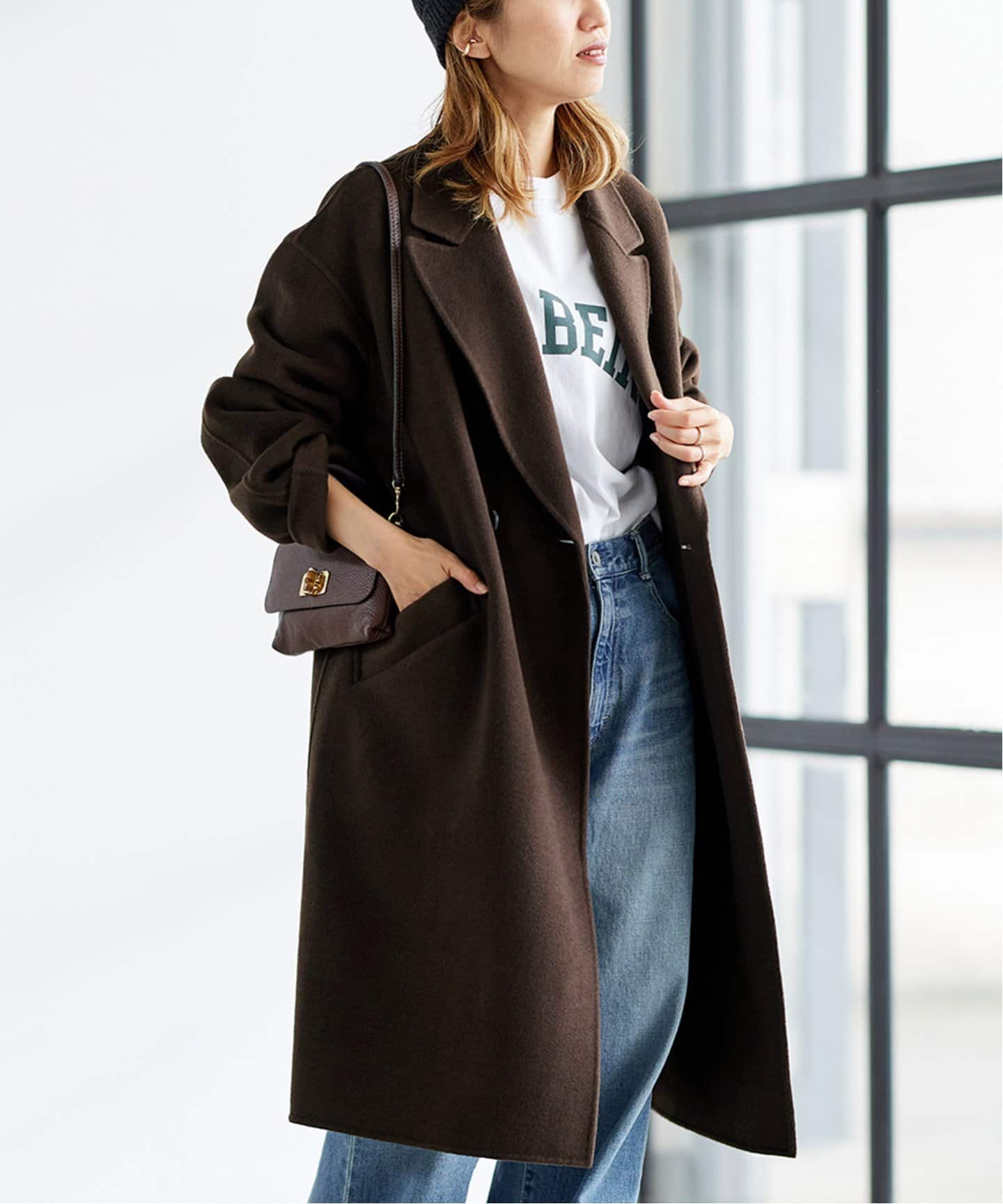 大人カジュアルをワンランク格上げする最旬コートカジュアルコーデにラフに羽織るだけで一気にコーデの格を上げてくれるのが、FRAMeWORKのSUPER160sダブルブレストコート。Spick & Spanのハンサム顔のDESCENTE ALLTERRAIN 81別注 WARM COATは、あえて甘コーデに重ねるのもグッドバランス。