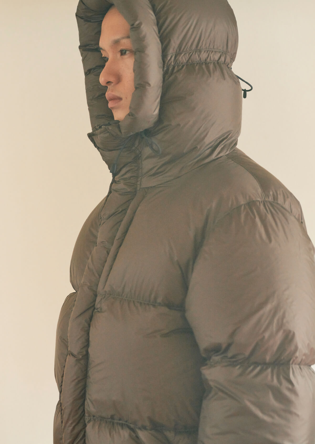 2018年より、少しずつアップデートしながら継続リリースしてきたジャーナルスタンダードのベストセラー。 その最新作は、オリジナルのラスカファブリックを新たに改良した素材「ラスカグラフェン」を使用した 。 グラフェンとは、熱伝導の高い機能性繊維のことで、コットンのような柔らかな肌触りながらも、軽量で耐寒性耐摩擦性に優れるハイスペック素材。 内部にはアウトドアブランドで重用されることの多い、保温性に優れる850フィルパワーのグースダウンを使用しており、袖の内リブやフード裏にスピンドルを配すなど、機能性とデザイン性も抜かりなく作り上げた。 保温性を追求するとどうしてもスマートさが失われてしまいがちなダウンも、素材の妙でミニマルかつ無骨な印象に。 カラーはグレーのほか、ブラック・ブラウン・カーキ・ブルーの全5色展開。