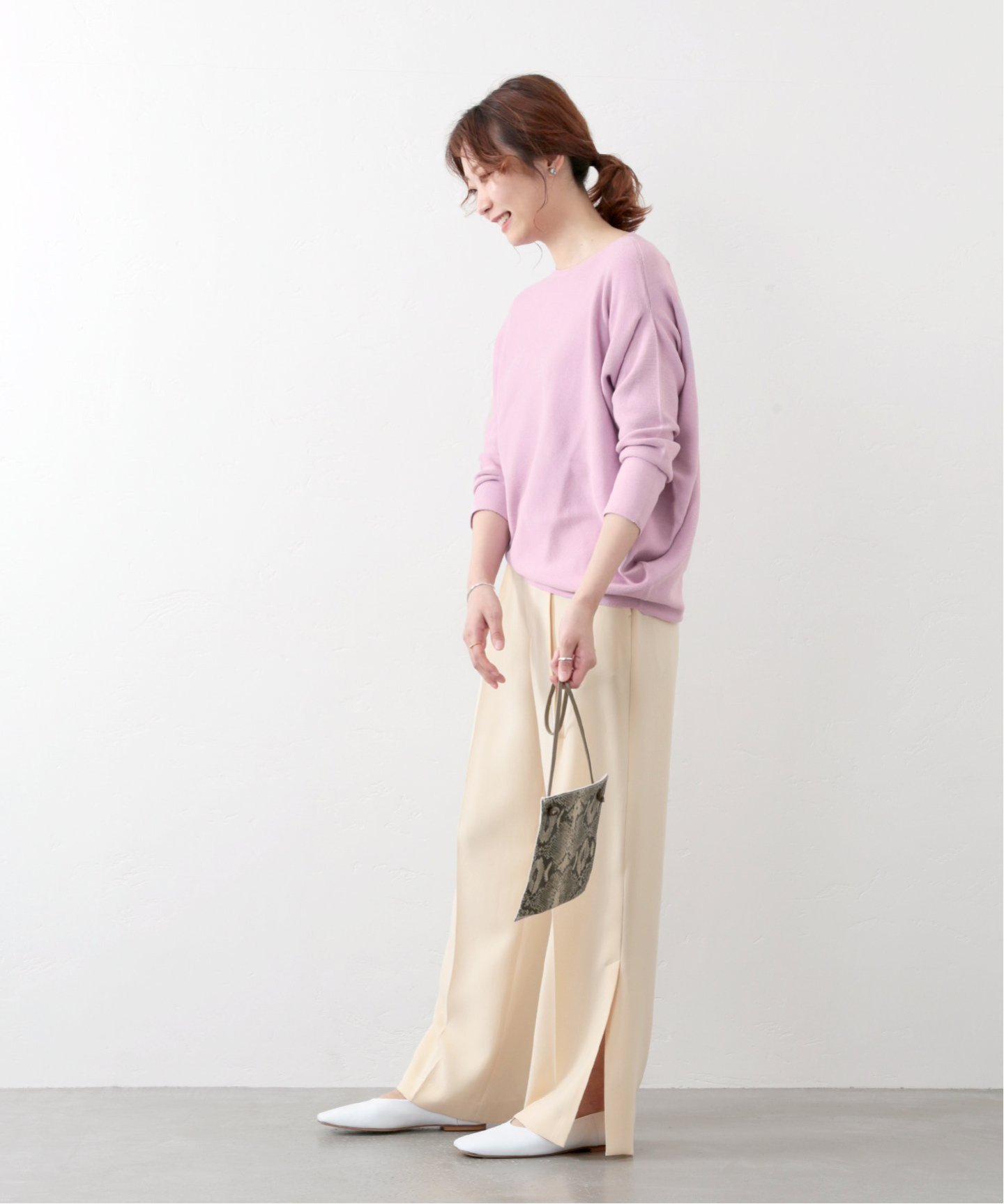 ニュアンスピンクで鮮度を高めてダスティなくすみのあるピンクのカラーニットなら、
