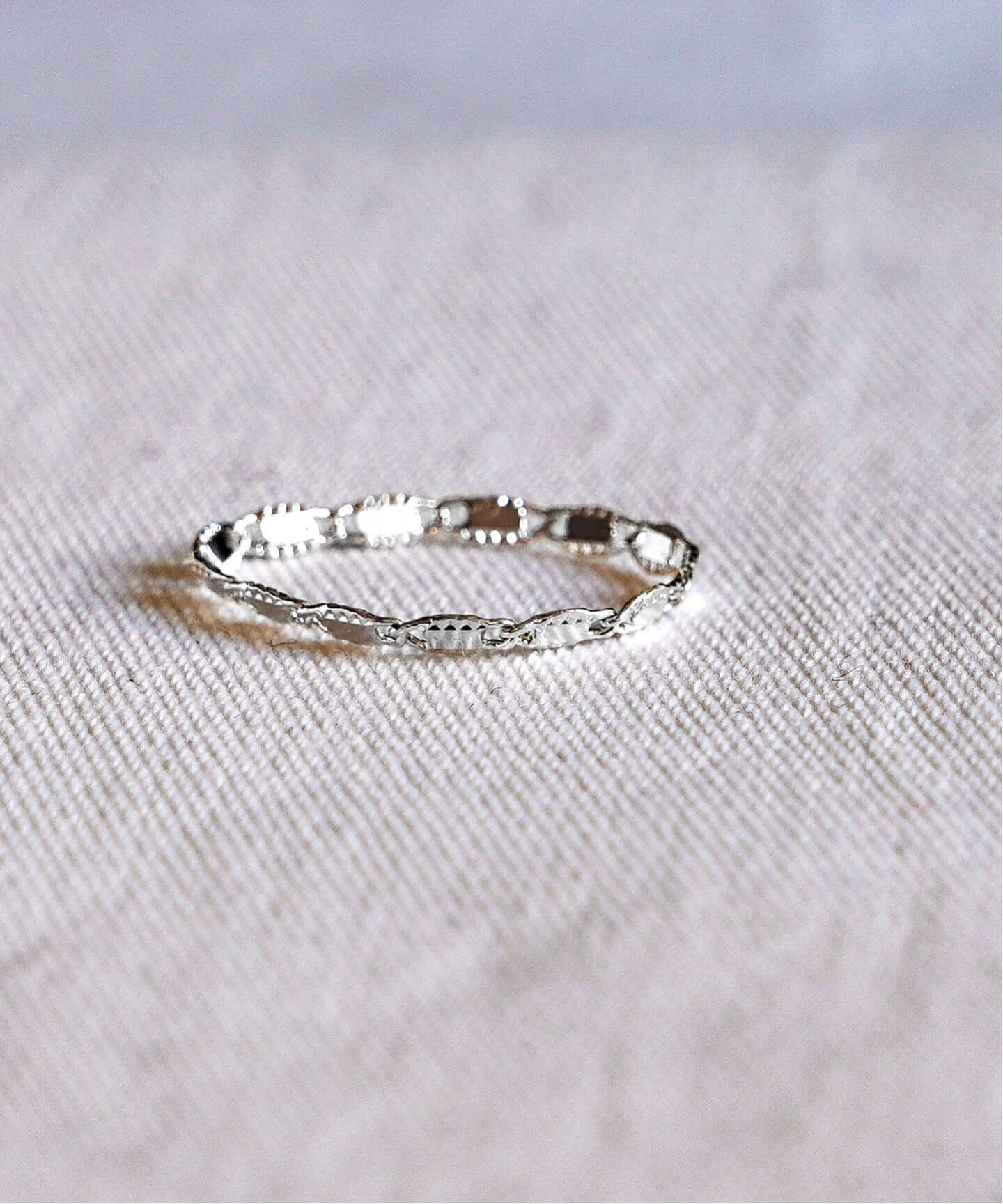 ミル打ちのような繊細なディテールが光る別注リングなど、