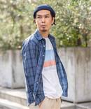 - それでは、こちらのシャツを使ったスタイリングをご紹介。