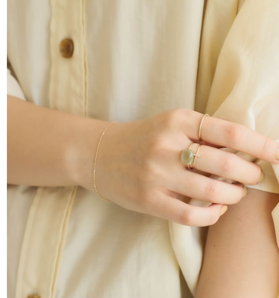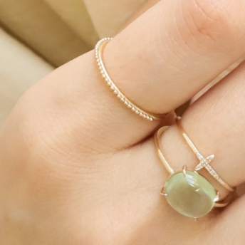 淡いグリーンのストーンリング。