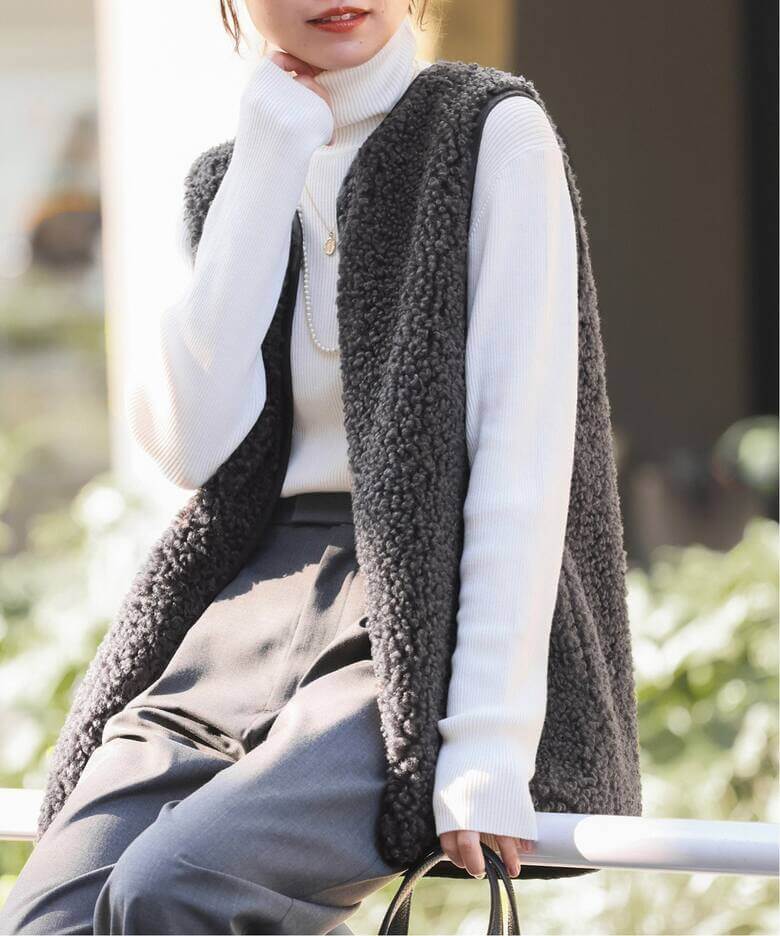 トレンドのふわふわ&もこもこを気軽に楽しめる!この秋冬のビッグトレンドであるファーアイテムやふわふわニットをチェック。relumeのカーリーフェイクファーベストは派手見えせず、デイリーに取り入れやすいスッキリしたシルエットが魅力。