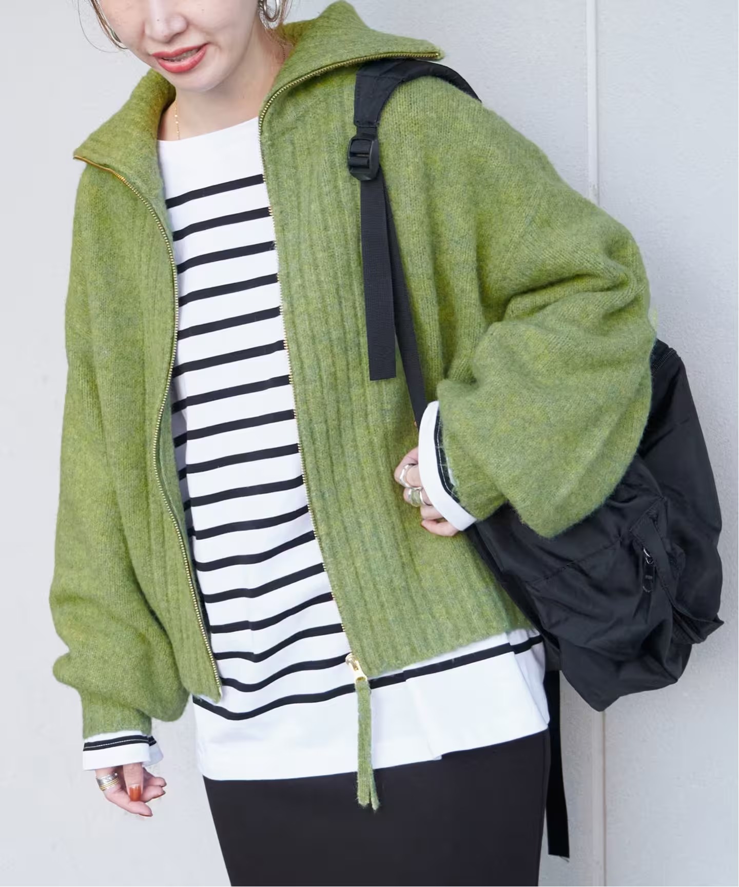 こなれたムードに導いてミリタリーやワークを想起するカーキを取り入れることで、カジュアルがこなれたムードに。トレンド感溢れるZIPカーディガンや、トライバルなPENDLETONのプルオーバーが狙い目。女っぽいスカートも、グリーンが新鮮。