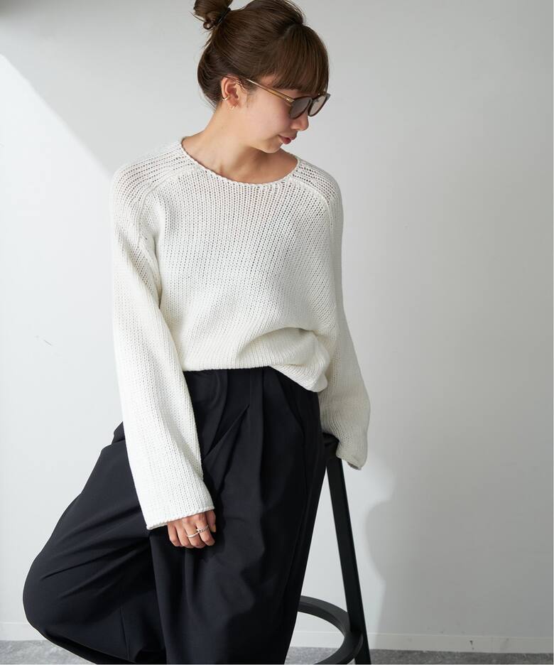 大人リラクシーアイテム袖を通すと洗練されたシルエットに魅了されるCOTTON TAPE YARN プルオーバー。ドライなタッチやルーズなシルエットがこなれつつ、女性らしさと華奢見えを演出。マニッシュなセミワイドのWashable Trousersパンツとのコーデも◎。