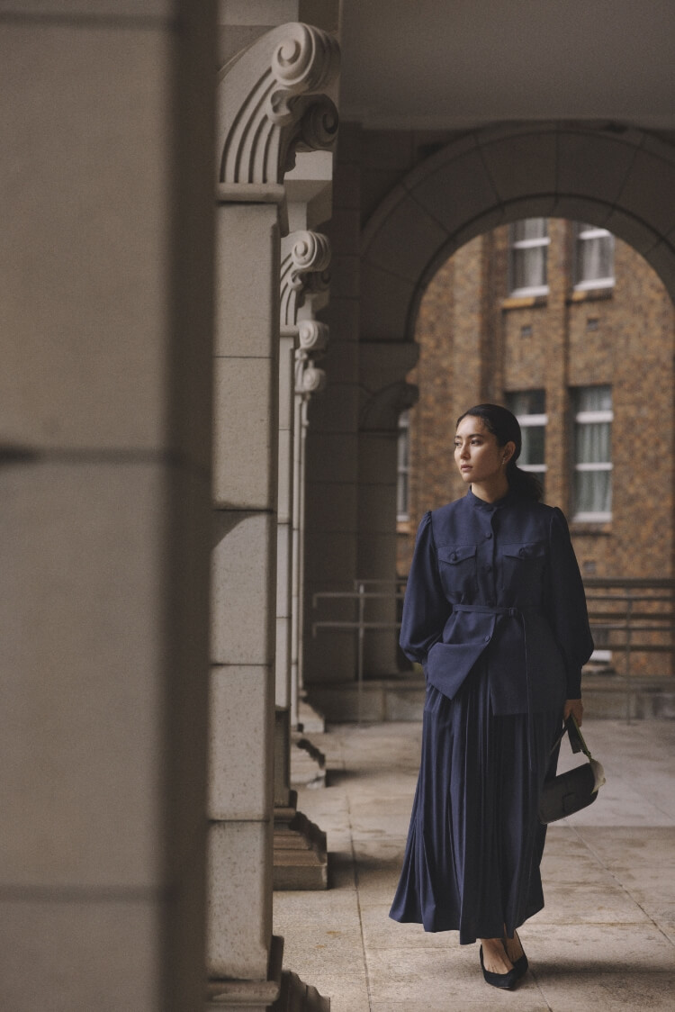 - スカートは所作を優雅に魅せる細プリーツ