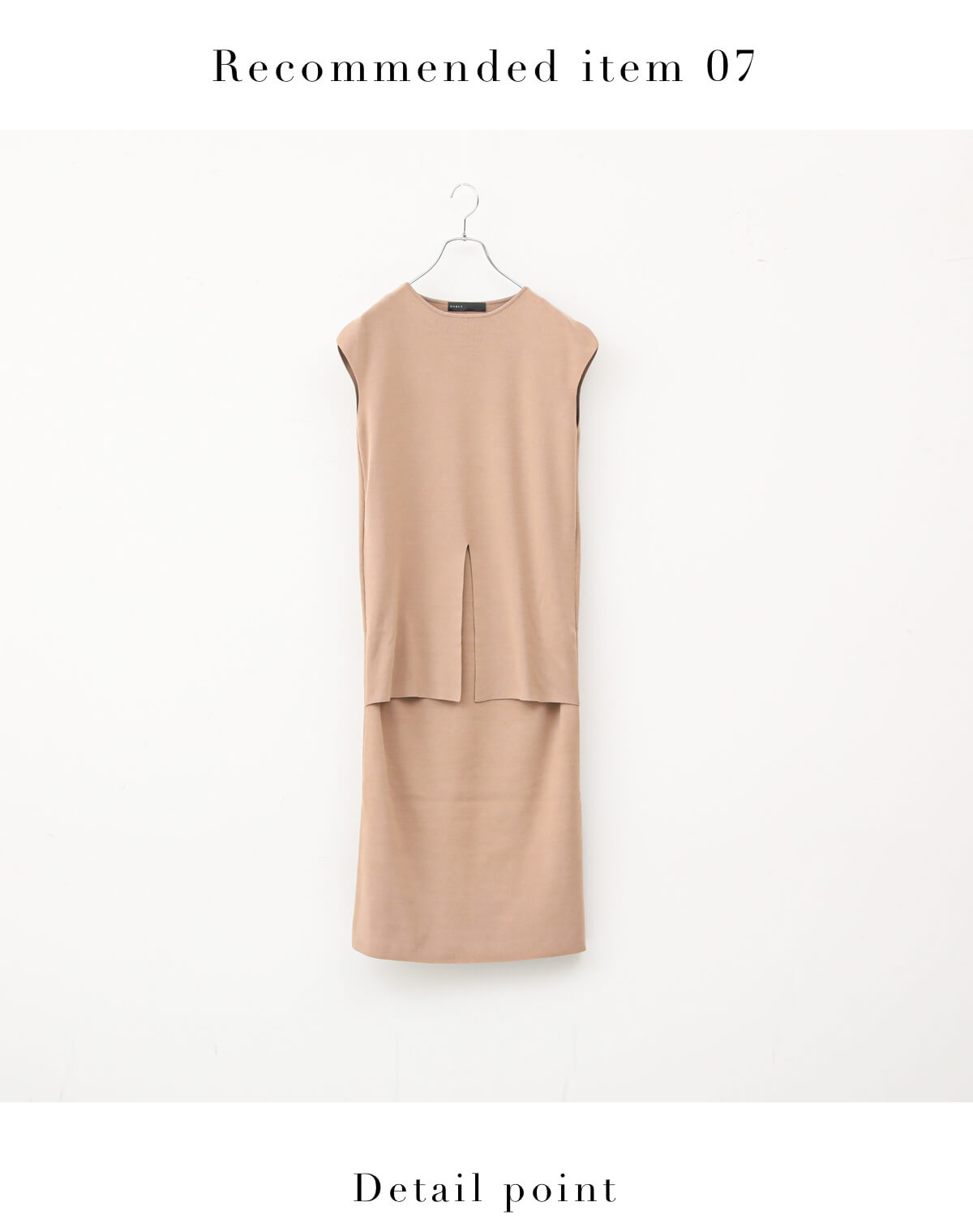 明るめのベージュが大人の女性にぴったりのノースリーブワンピース。濃いキャメルはカジュアルな印象になりますが、ベージュなら落ち着きもありちょっとしたお出かけにもぴったりです。フロントに深めに入ったスリットとロングテールがお洒落度をアップ。ハンサムに黒ボトムスなどと合わせても◎。 - NOBLECo/Vis セットアップ風ワンピース◆¥17,600(税込)