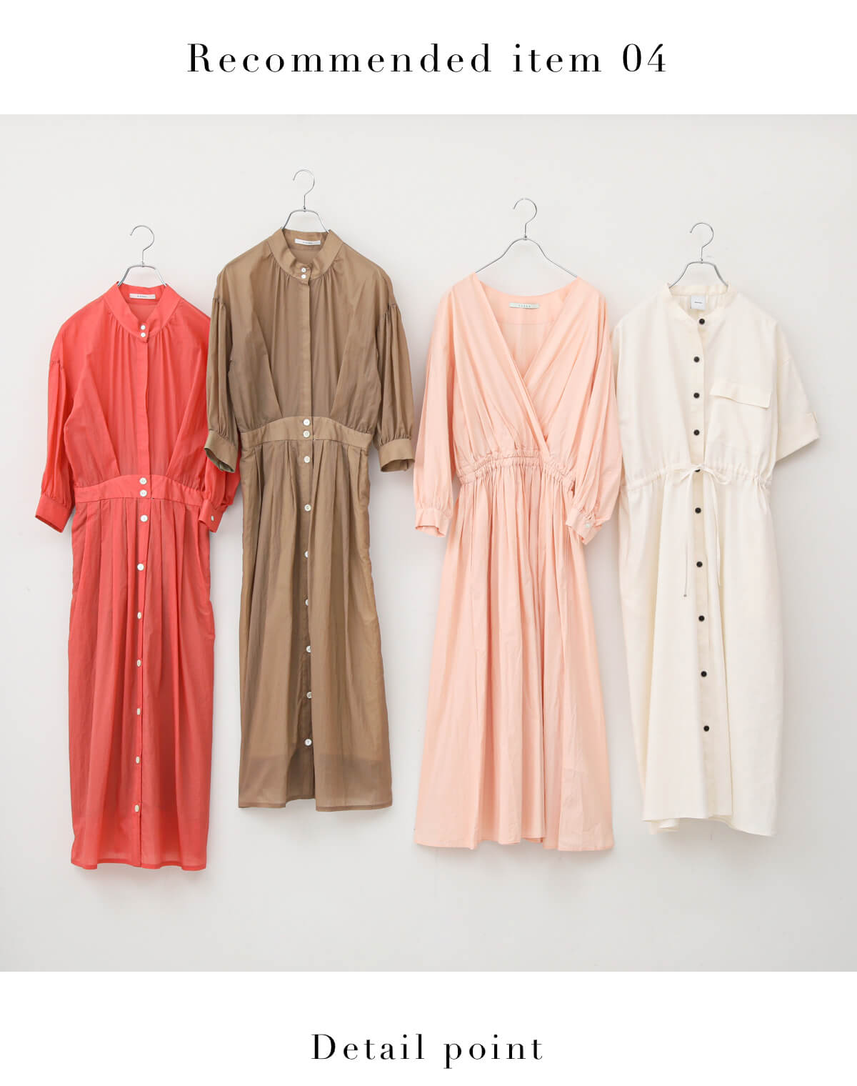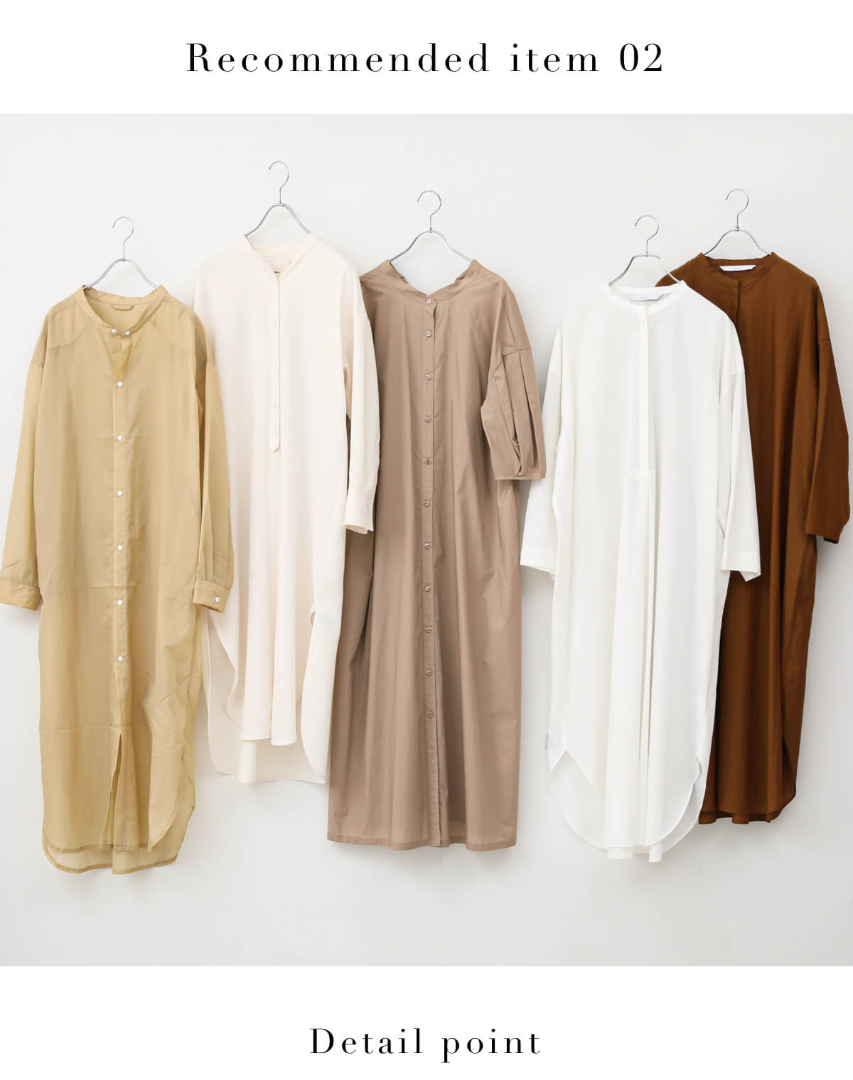 スプリングさんの定番にしたいナチュラルカラー・ブラウンのワンピース。薄いベージュなら、よりナチュラルな印象に。キャメルはスプリングさんの肌をさらに明るく見せてくれます。驚くほど軽いナイロンタフタのシャツワンピースやトレンドのシアーなロングワンピなど、バリエーション豊富にセレクト。 - Bonumスーパーライトハッスイナイロン シャツドレス¥18,480(税込)