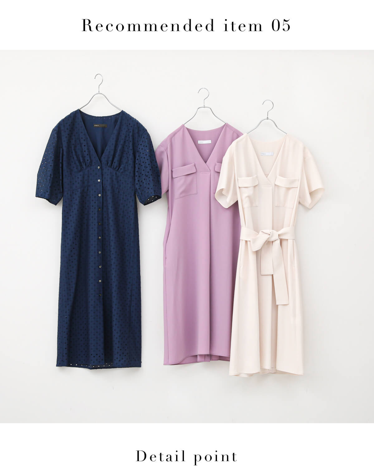 全体的に明るめカラーが多めなスプリングさんですが、ネイビーを選べば落ち着きもありつつ親しみやすい印象に。パープルも女性らしい華やかな色味でおすすめ。上質レトロなティアドロップ刺繍が、ネイビーだけど涼感漂う春夏らしいムードに。ポケット付きワンピは、胸元の大きなポケットが視線を上げてくれてスタイルアップ効果も。 - NOBLEティアドロップレースワンピース◆¥38,500(税込)