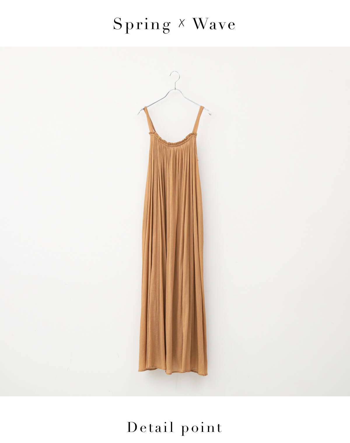 華奢なアイテムが得意なウェーブさんには、キャミソールワンピースがおすすめ。風になびく軽い素材やたっぷりとあしらわれたプリーツなど、ディテールも女性らしさにこだわって。スプリングさんらしい明るいキャメルカラーで気分も明るくなりそう。 - Spick and Span【S.TAKECHI× Spick & Span】バックタイドレス◆¥27,500(税込)
