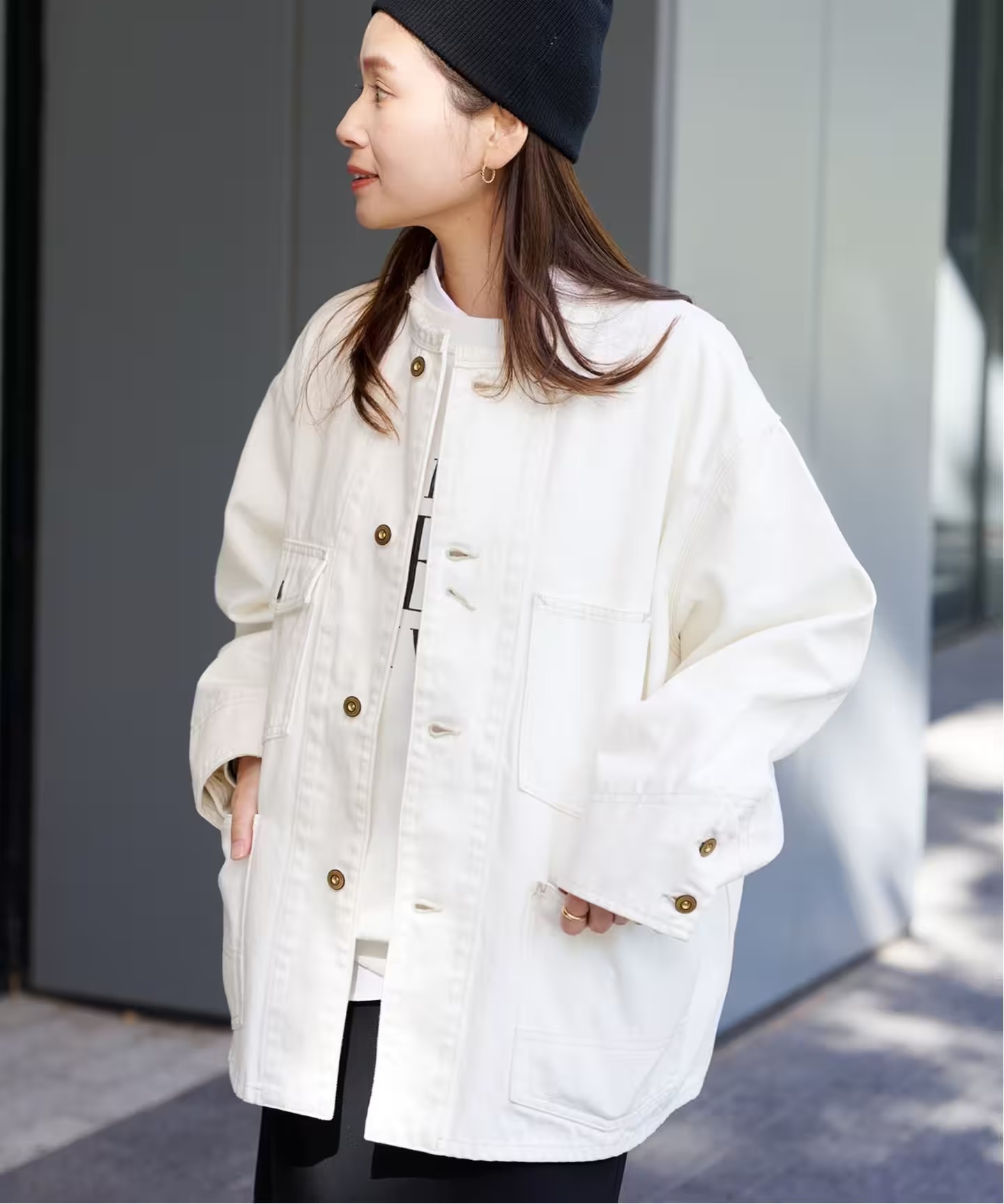 ラフに着こなしてヴィンテージライクな加工をのせたボディと今っぽいボクシーなシルエットが好印象なFRAMeWORKが好事例。クリーンなムードに導くJOURNAL STANDARDのデニムカバーオールは女っぽい着こなしにもマッチ。