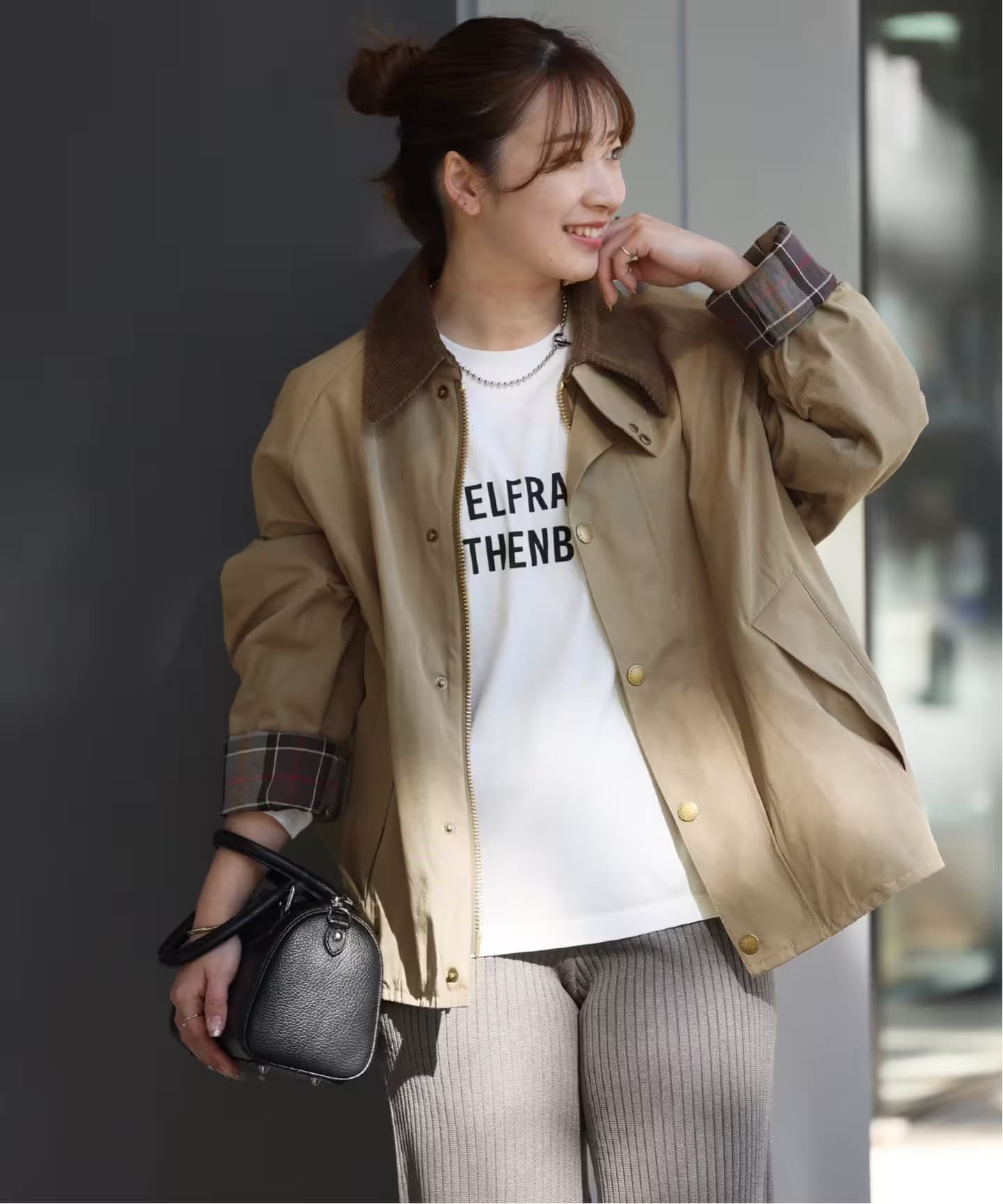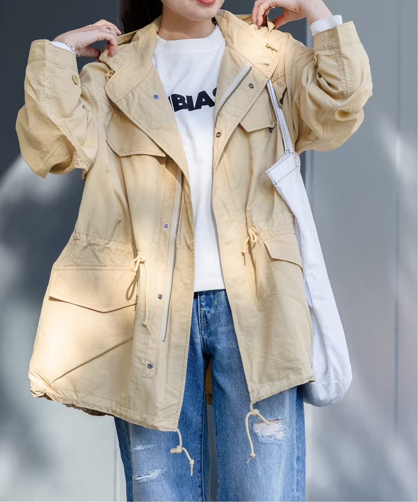 汎用性の高いベージュでミリタリーを満喫!着回し力が高いベージュはアウターで取り入れるのもグッド。スポーティーなテイストに女性らしいニュアンスをプラスしたNOBLEのミルキーシアーボリュームブルゾンなど、トレンドのミリタリーが上品に仕上がって◎。