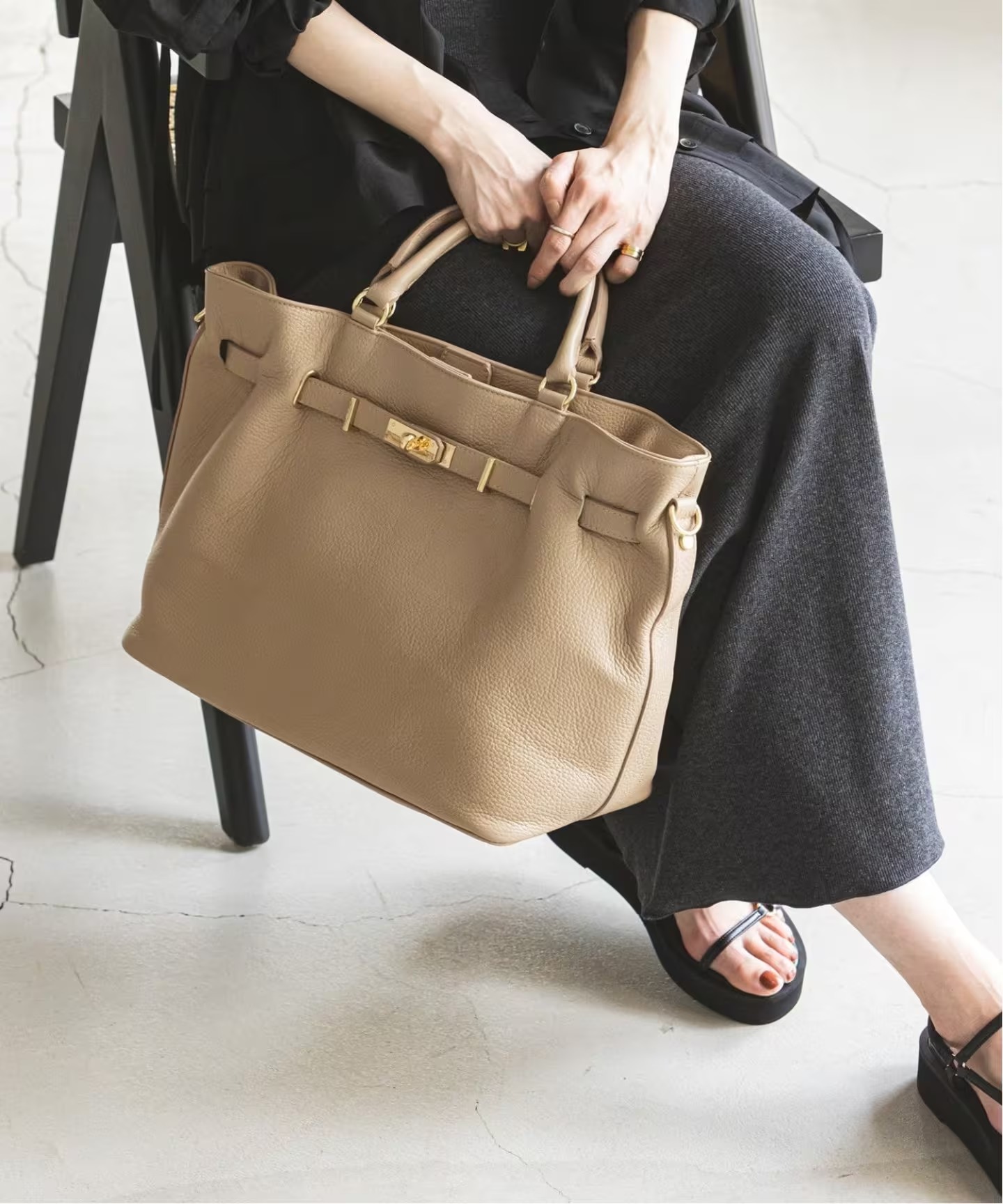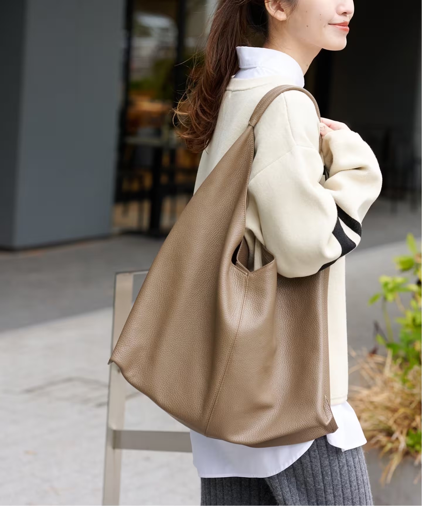 デイリーに大活躍する大きめサイズJOURNAL STANDARDのAULENTTIレザーショルダーバッグやNOBLEのMILOSカナグツキトートといったビッグサイズのベージュバッグが続々。AULENTTIはころんとしたフォルムが可愛いボストンもチェックして。