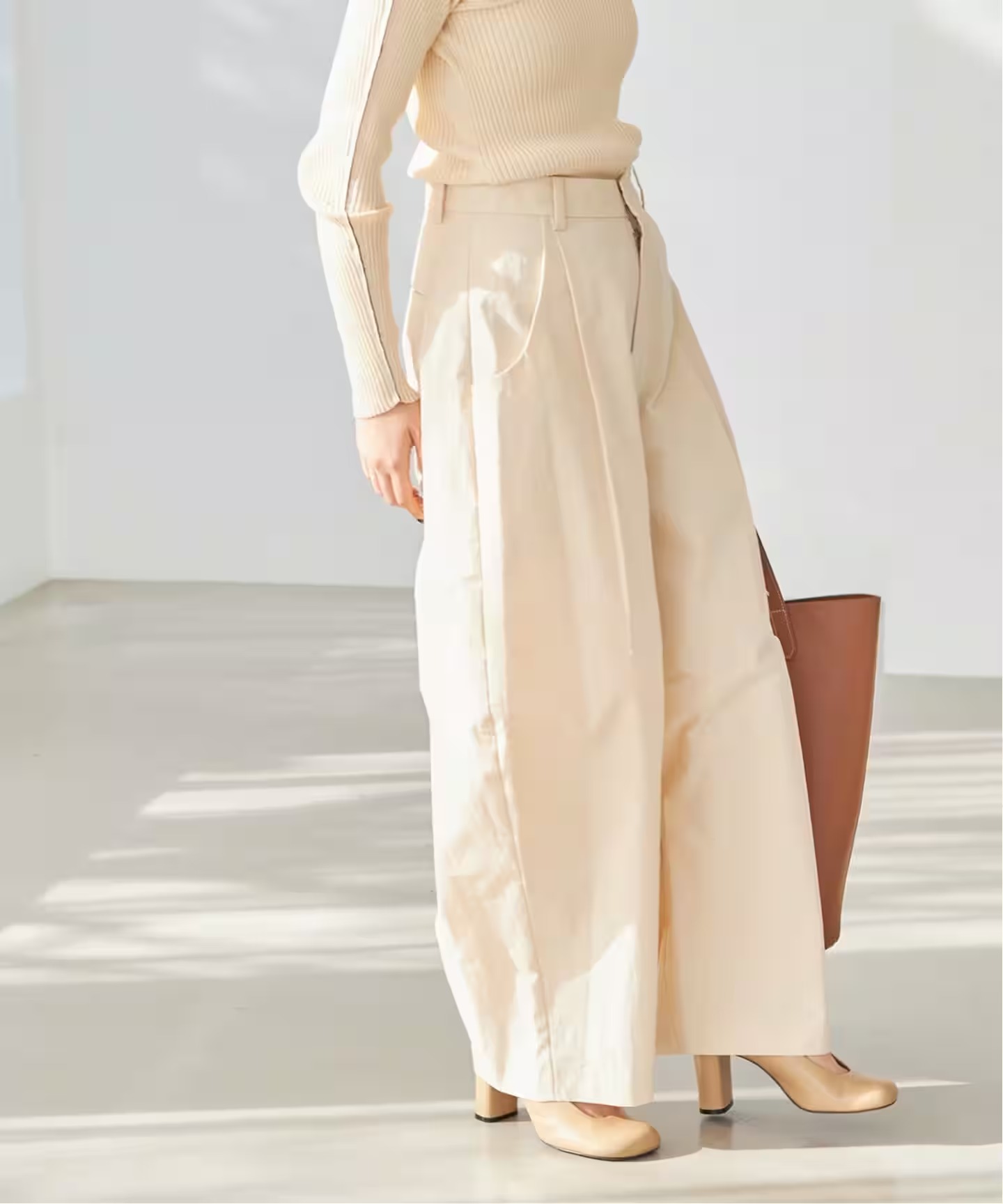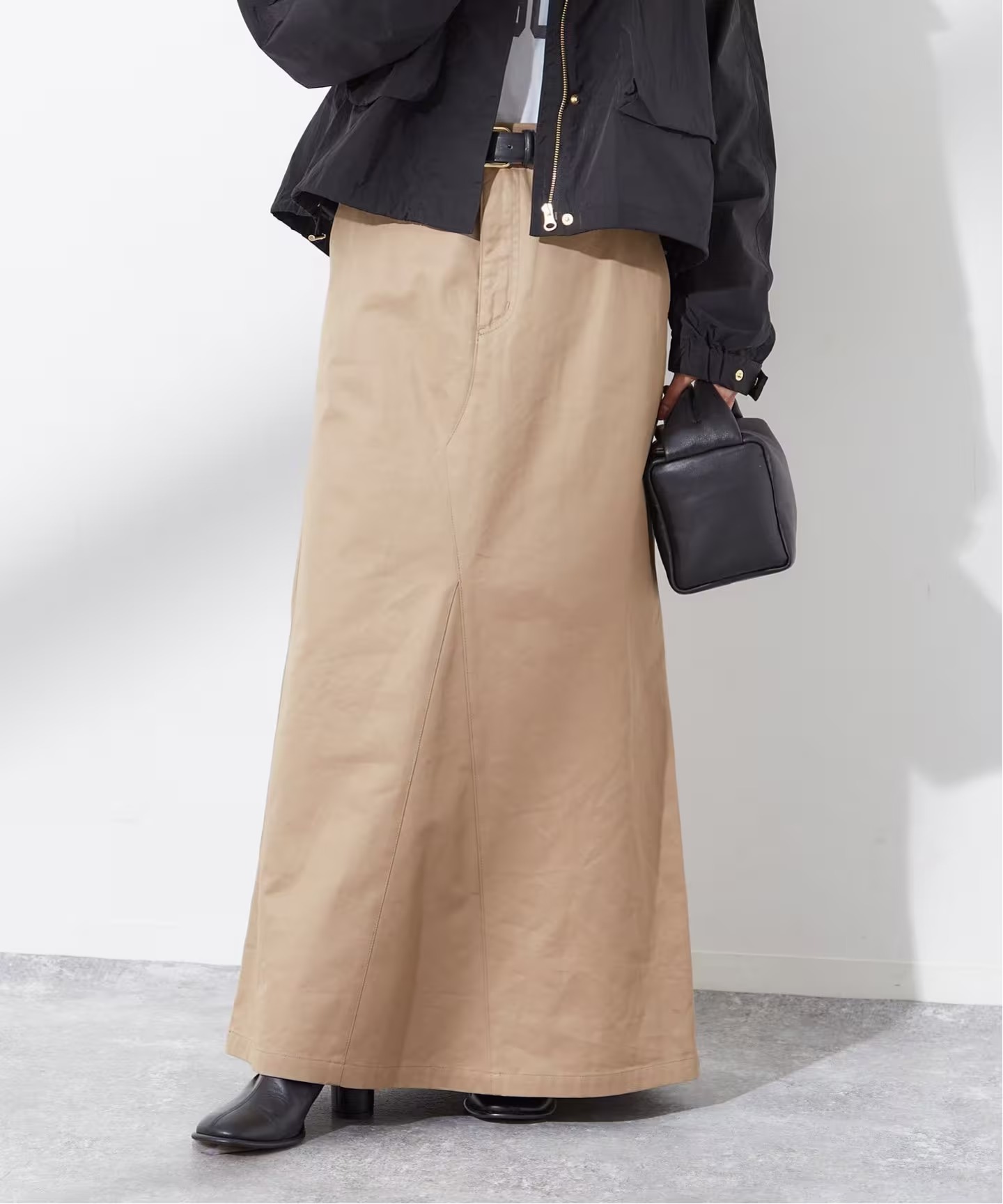 マニッシュなパンツが気分パンツは今年もチノに熱視線。PlageのR’IAM バルーンチノパンツのように、デザインにひとくせあるマニッシュなデザインがトレンドムードを高めてくれそう。スカートはマキシ丈のIラインが狙い目。
