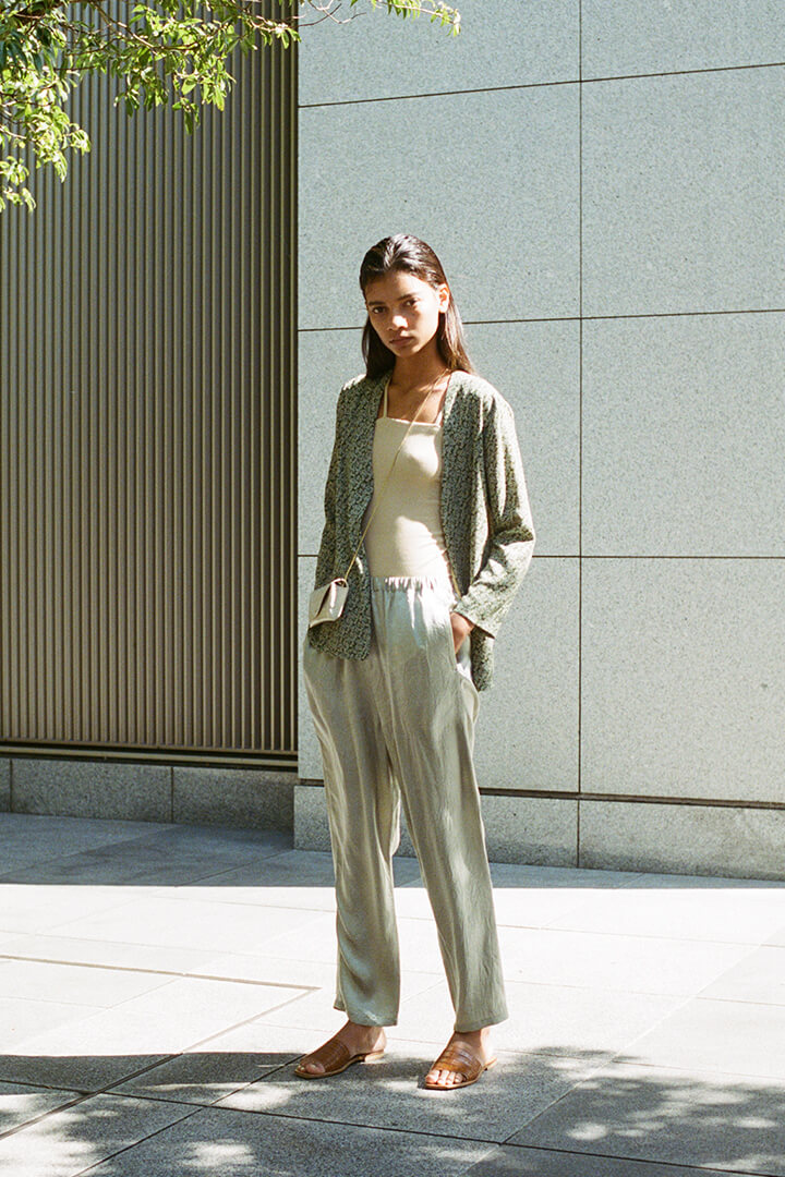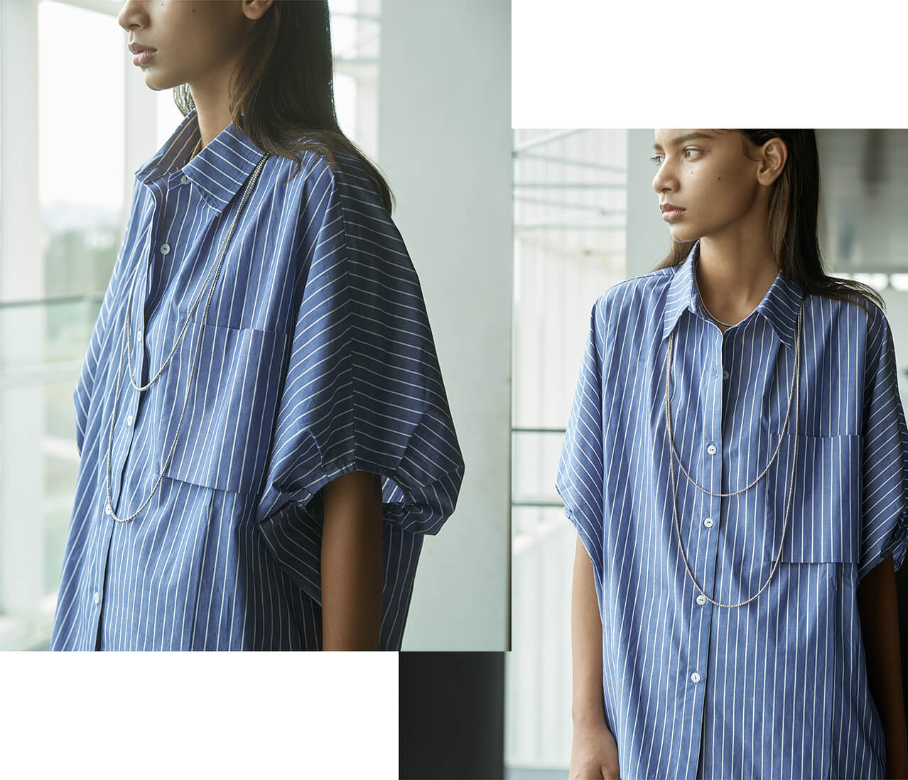 トレンドのSET-UPもシャツワンピとゆるパンツならば、リラクシングなのにこなれた印象に。