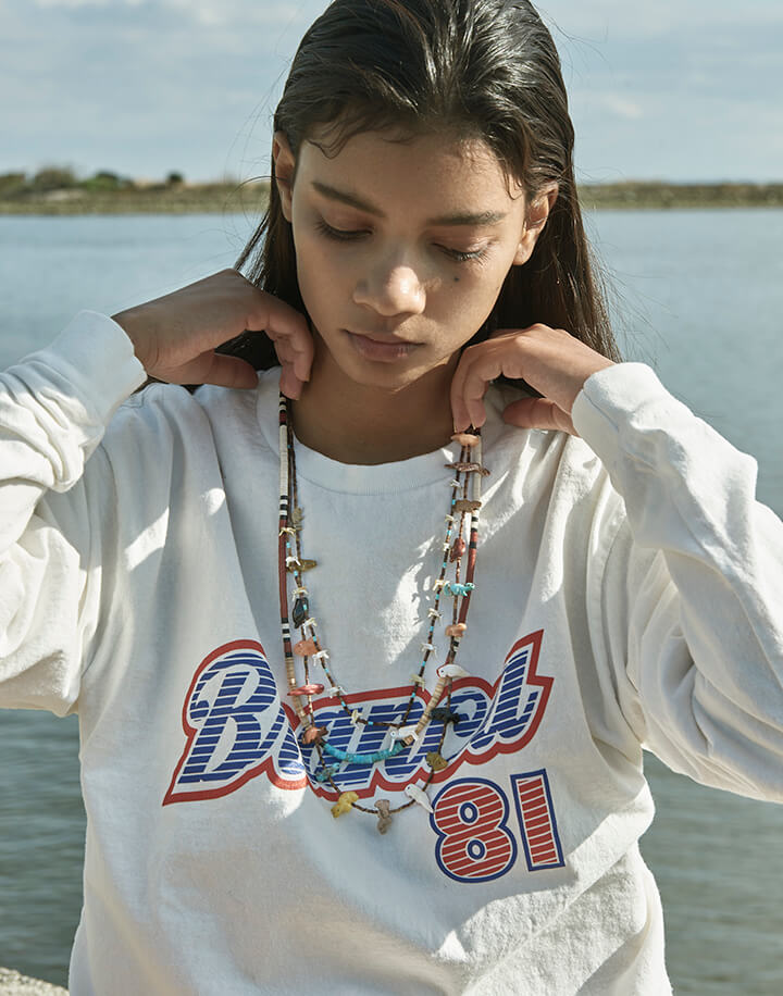 シンプルなナバホパールや個性的なアニマルモチーフ、夏のスタイルに馴染むウッドビーズ等、様々なラインナップのネックレスをご用意。