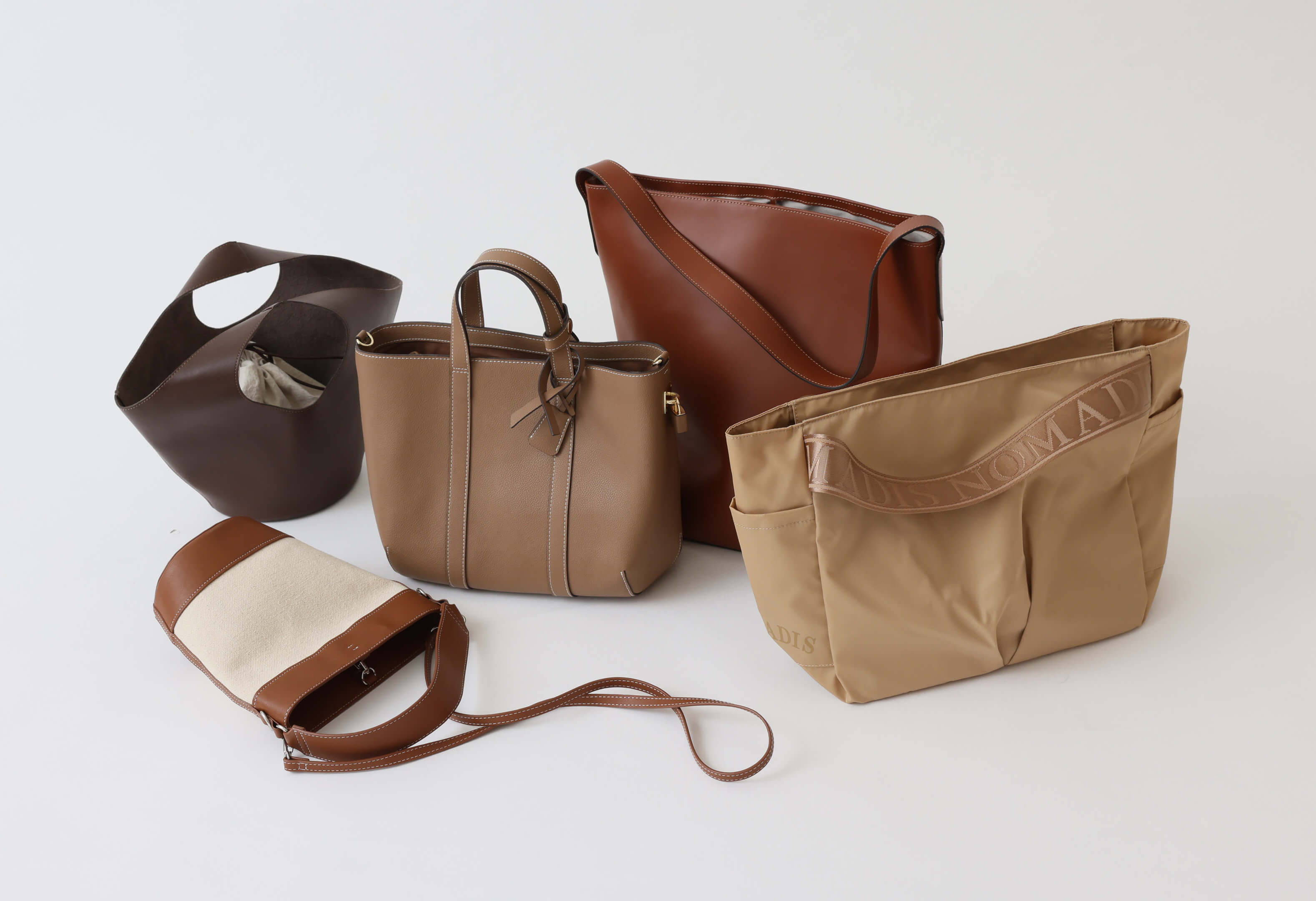 トレンドのブラウン・ベージュはバッグで取り入れてどんなシーンにもどんな装いにもマッチする、万能カラーのブラウン・ベージュがトレンドに浮上。シックなブラウンとともにバッグで取り入れるのがおすすめ。オンにもオフにも活躍するシンプルなトートやミニショルダーをプッシュ。