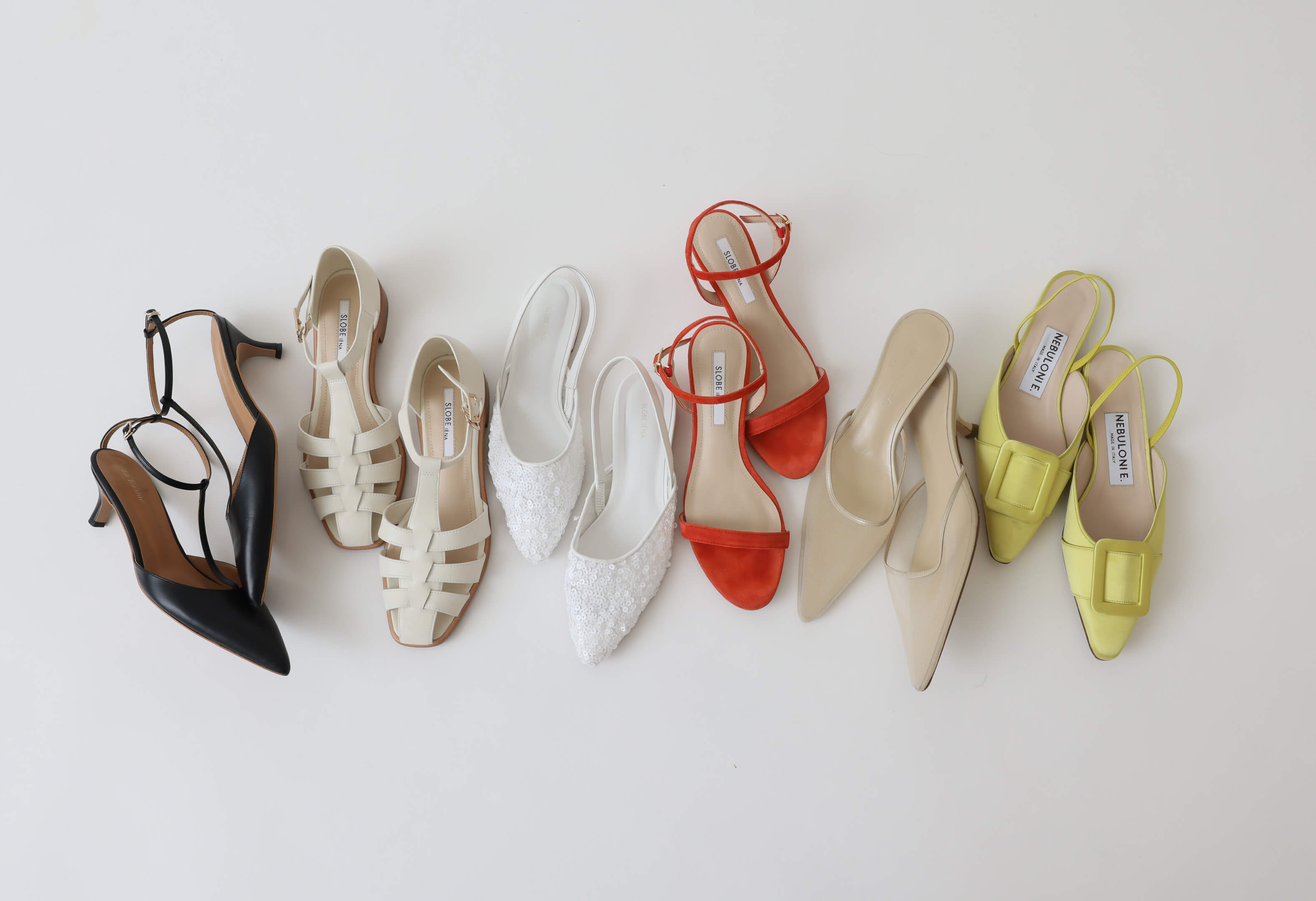 ヌーディーなサンダル足の甲のラインを美しく見せてくれて女っぽい抜け感を演出する、華奢なストラップのキレイめサンダルが続々。素足のようなクリアなトップがキャッチーなMARYAM NASSIR ZADEHのOLYMPIA WEDGE サンダルも◎