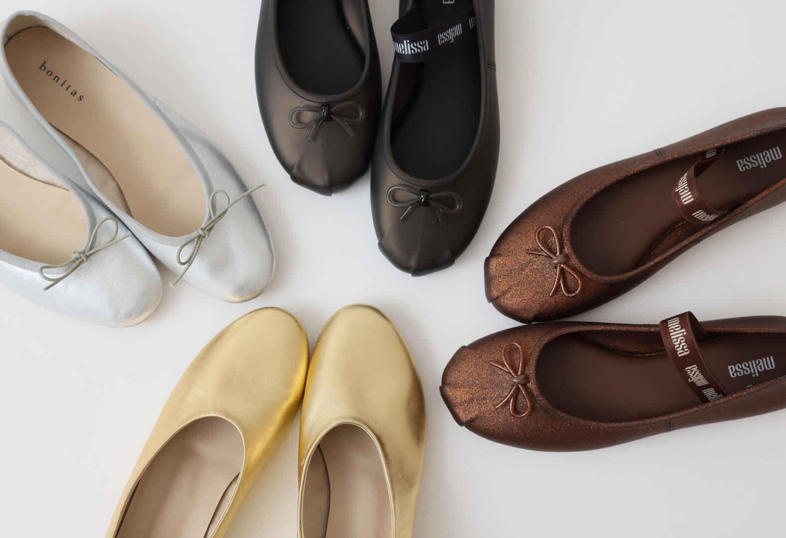 履き慣れたバレエシューズでトライコーデの新しさを印象付けるメタリックなシルバーはこの春の注目トレンド。デイリーに使いやすいバレエでトライしてみて。LE TALONのストラッププリーツバレエが好事例。サテンの光沢が上品なIENA×SPELTAもおすすめ。