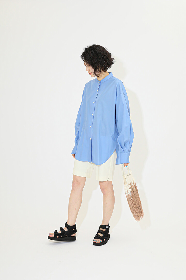 タイプライターコットンを使用した、清潔感たっぷりのビッグシルエットのシャツ。