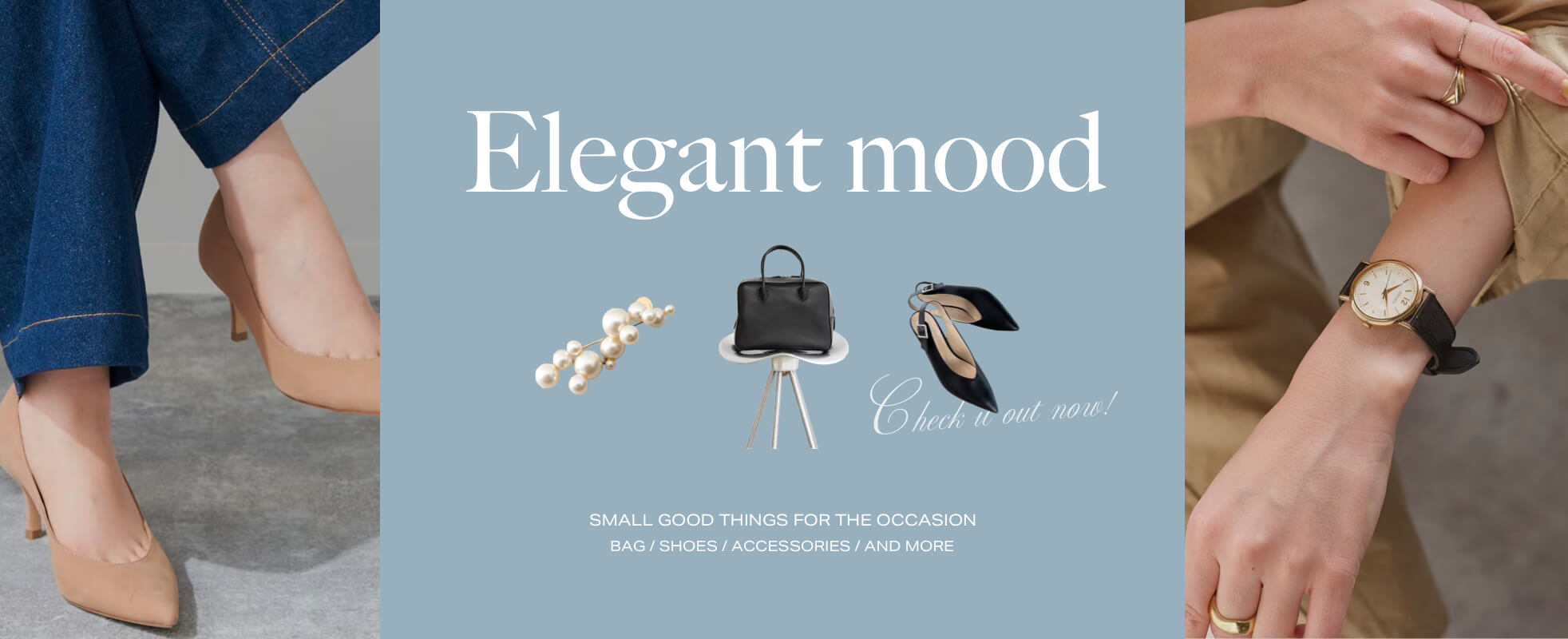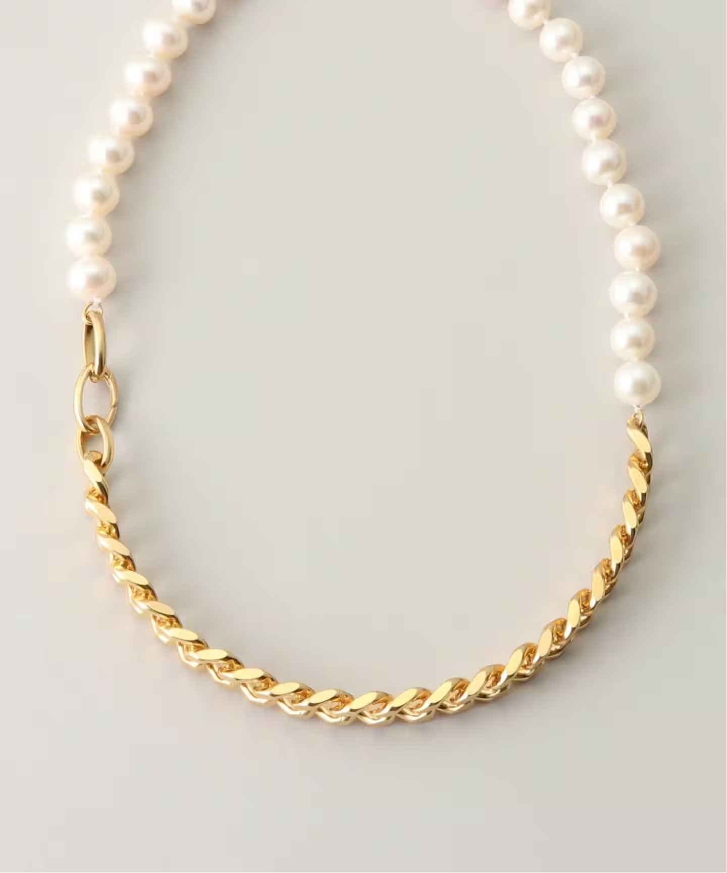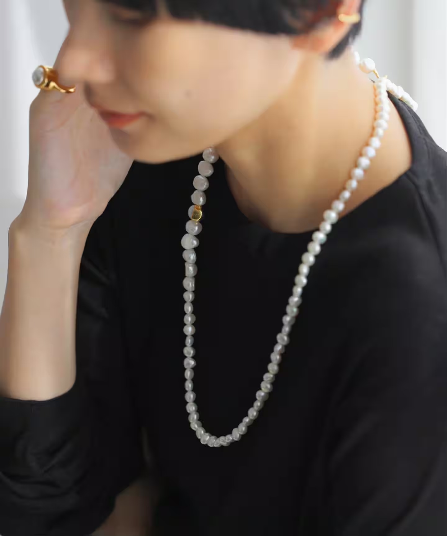 ほんのりエッジが薫るアクセサリーコンサバ&真面目すぎないパールアクセサリーが今っぽい。ゴールドチェーンを組み合わせたenasolunaや大きさの異なるバロックパールがコンテンポラリーなムードのPREEKなど。