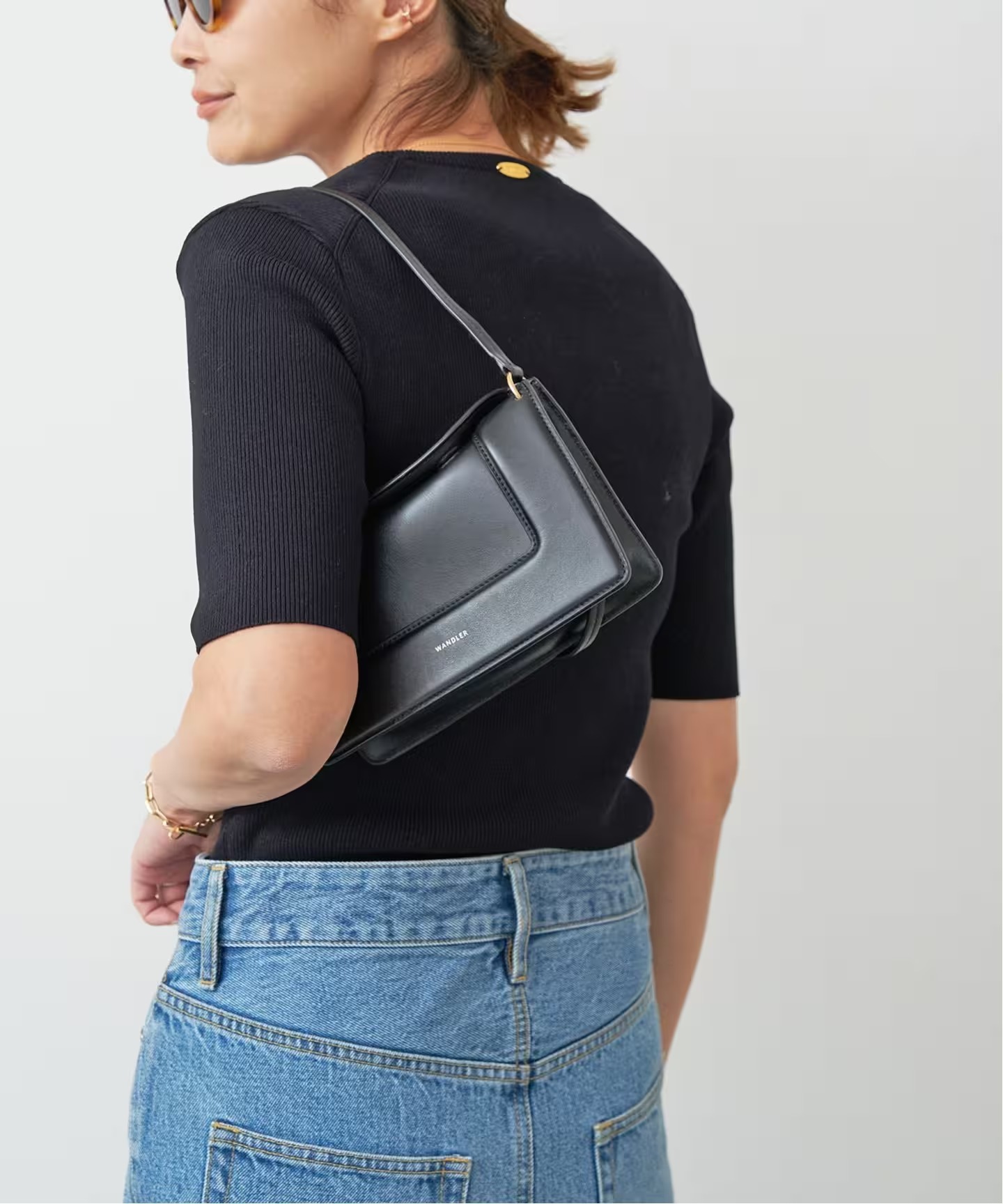 カタチで遊ぶどんなシーンにも対応してくれるバッグといえば黒。今季はミニマルなボストンからバケツ型、バケットタイプまで、バリエーション豊富なラインナップ。上品なゴールド金具などディテールも◎。