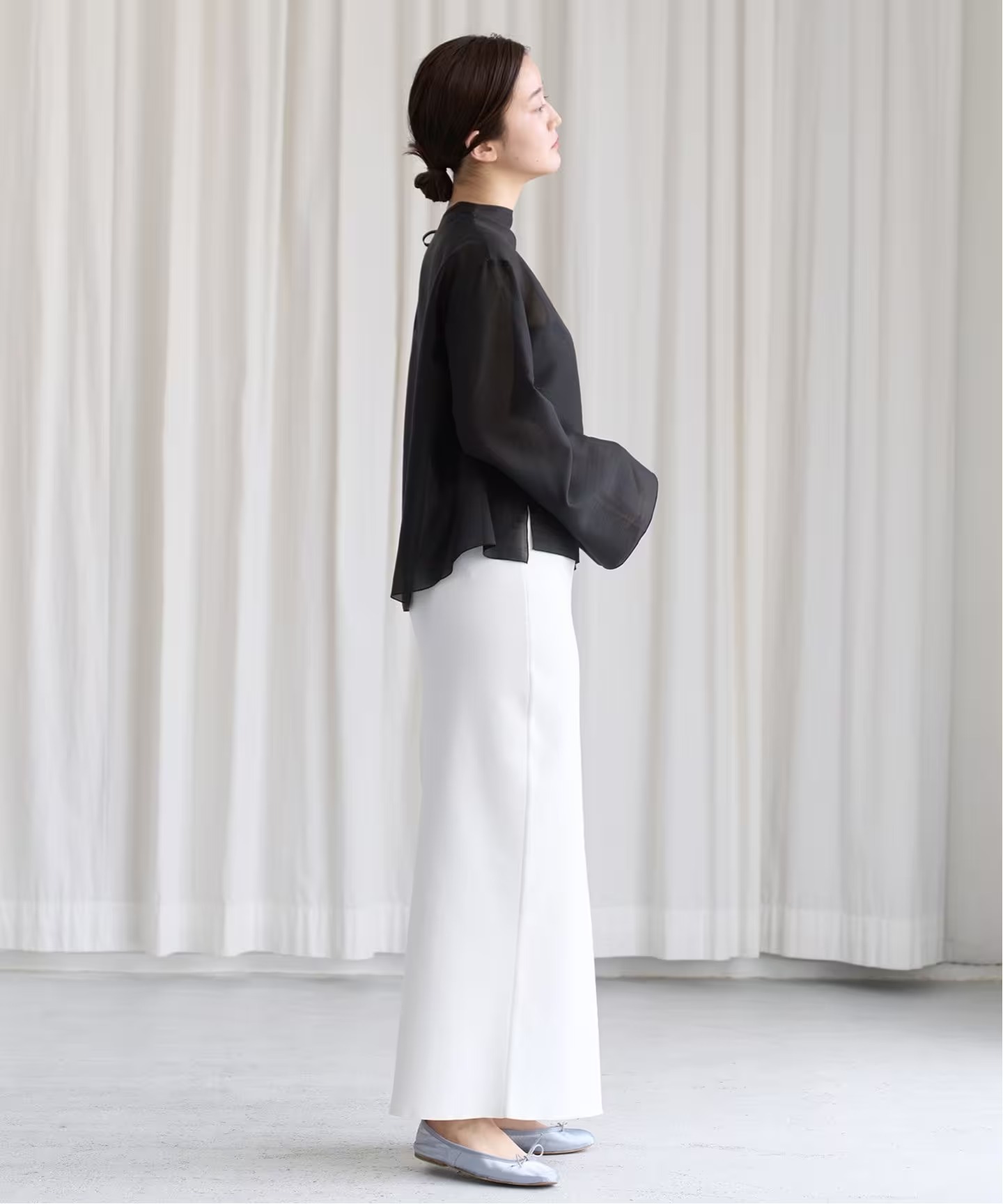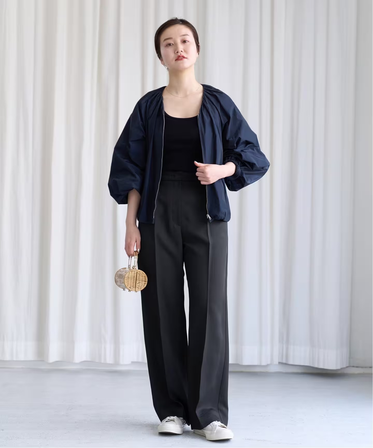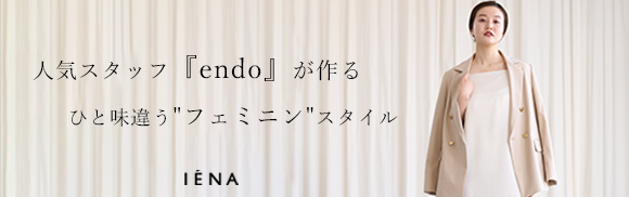 フェミニンアイテムIENAの人気スタッフendo.のコラボレーションは、上品でクリーンなムードがたっぷり。ミニマル&ソリッドなツイルタックパンツやショルダーリボンがさりげないワンポイントのシアーボトルネックブラウスなど。