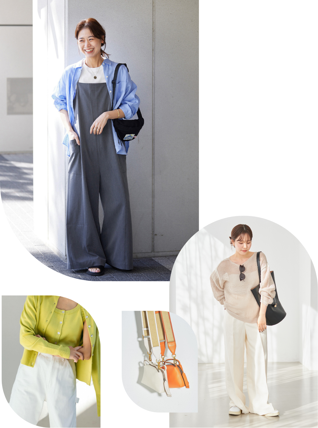 シアー素材で抜け感を出したり、セットやアンサンブルのアイテムで