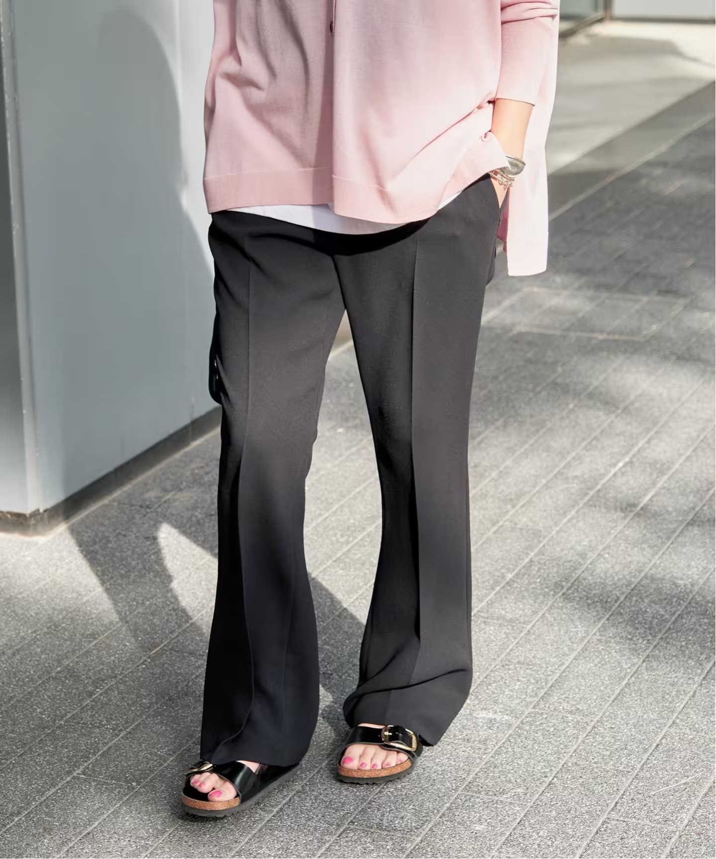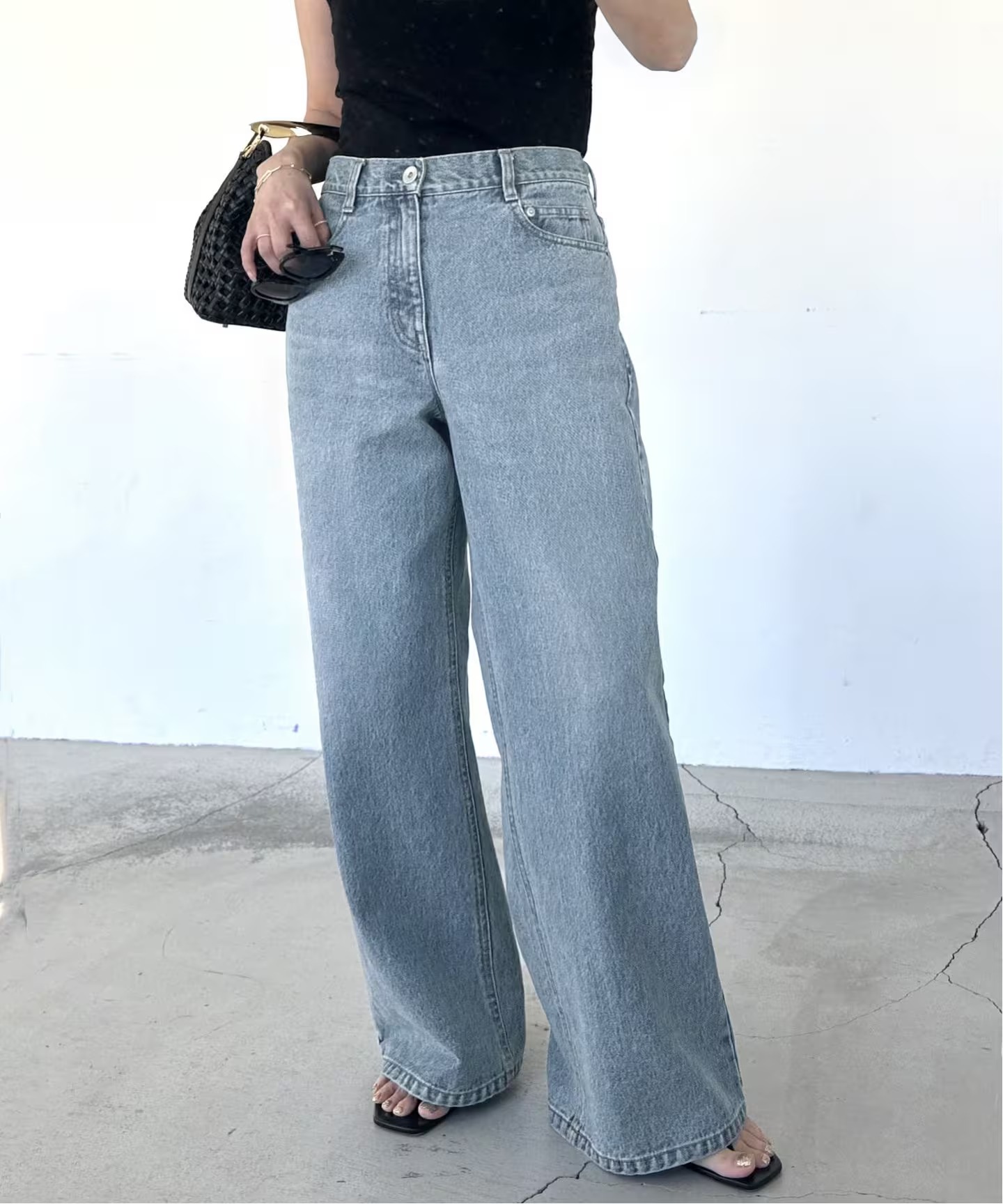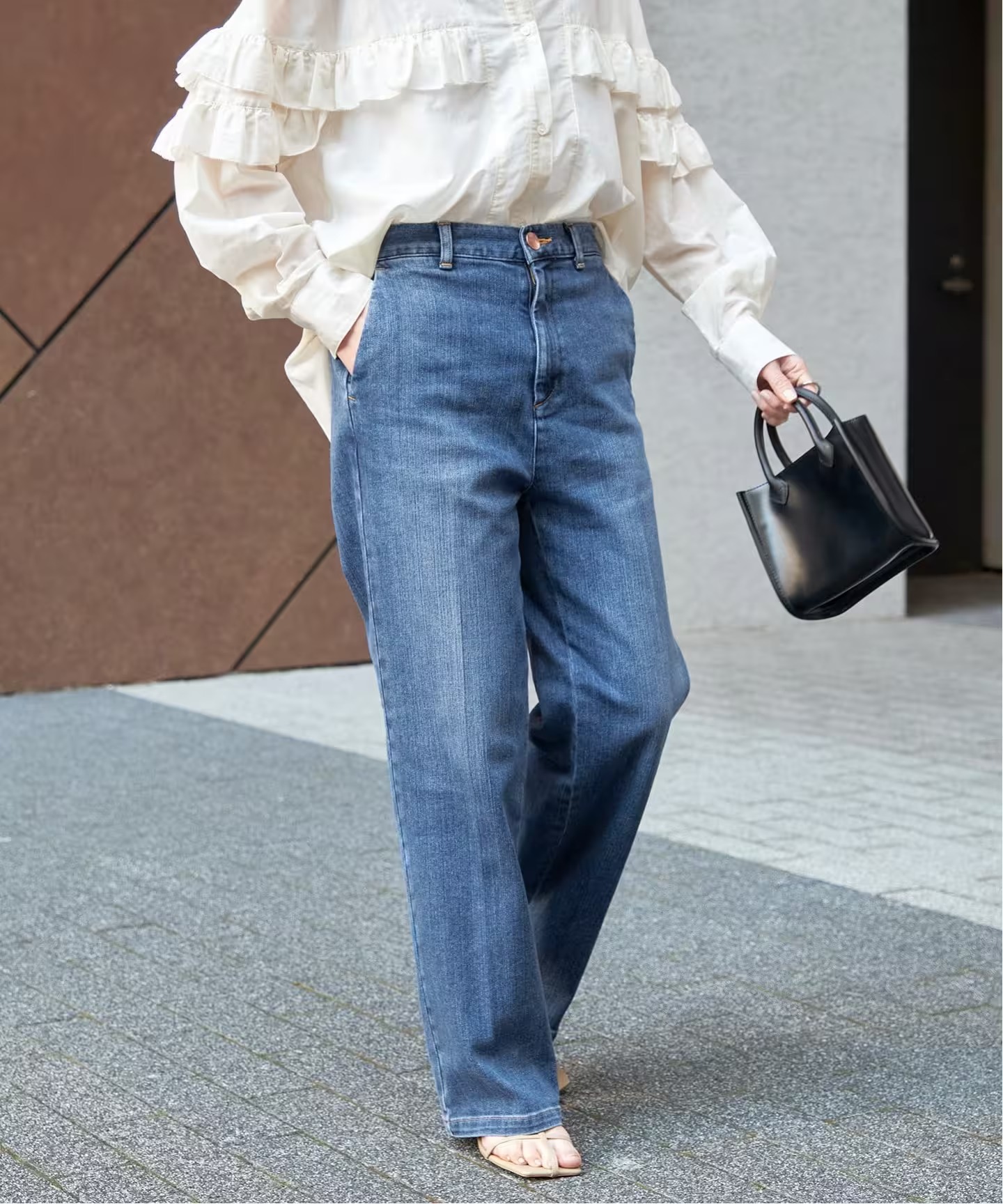 IENAのupper hights別注THE TAYLOR ワイドフレアデニムのようなシンプル&クリーンなフレアから、JOURNAL STANDARD 2タックワイドデニムパンツのようなモード顔まで。さらっとラフに履くだけでお洒落に。