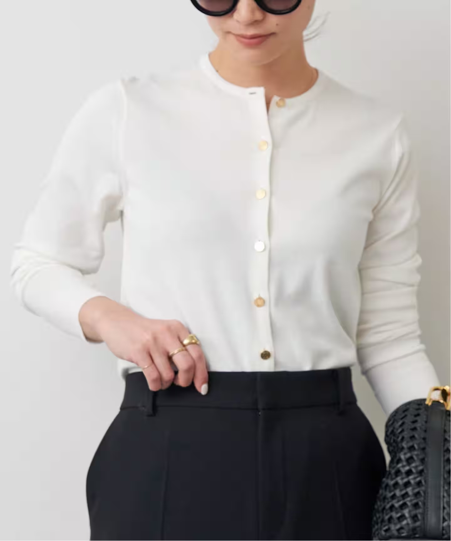 春コーデに悩まない一点投入サマ見えアイテムSpick&Span のC/ACダブルジャガードカーディガンはさっと羽織るだけで映えるビッグシルエットのカーディガン。FRAMeWORKはリラクシーな大人マニッシュが叶うウォッシャブルTWタックワイドパンツ。