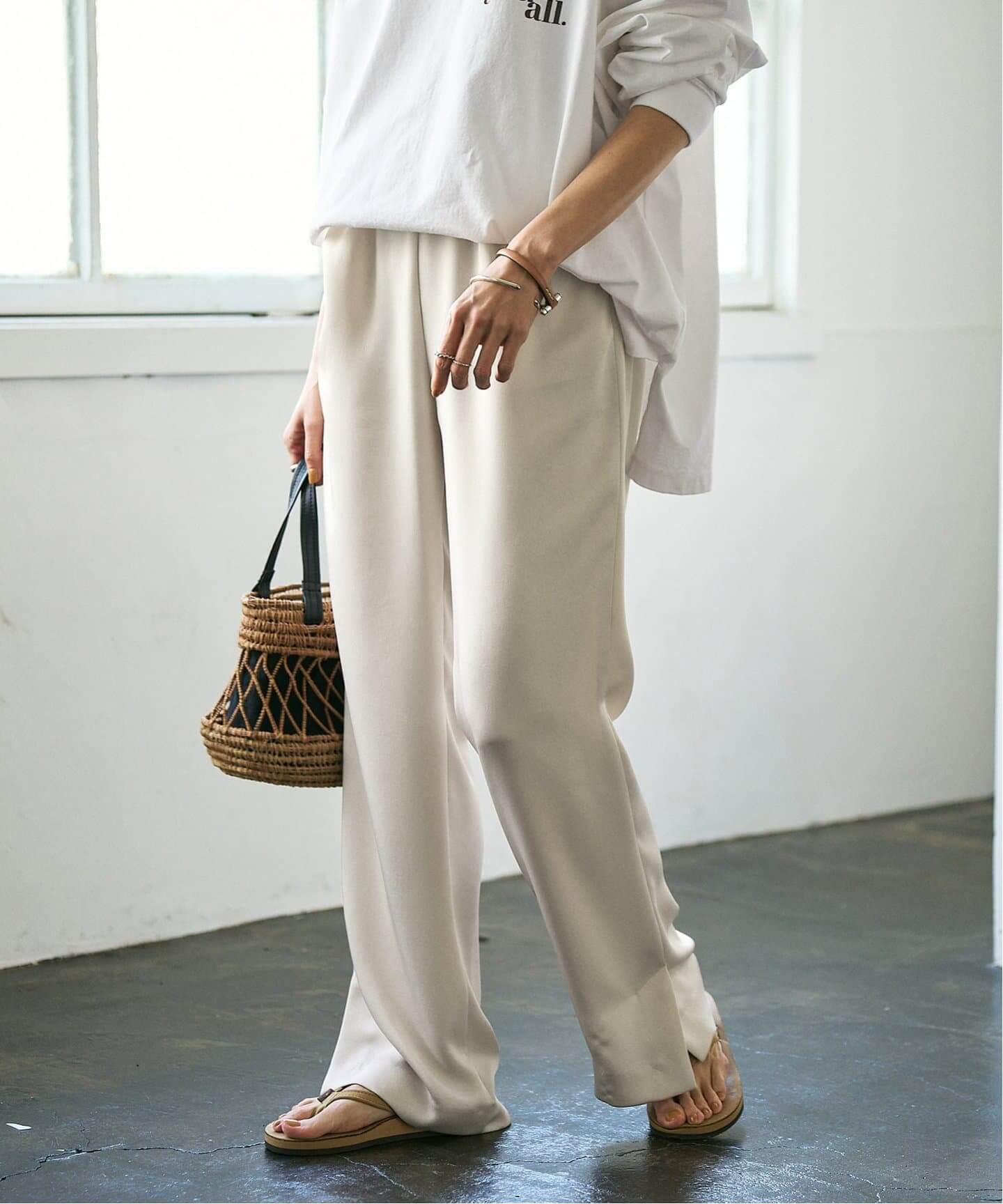 グッドデザインパンツJOURNAL STANDARDのベストセラーアイテムの一つ、ワイドなのにスッキリはけるリネンタックキュロットが今シーズンも登場。FRAMeWORKの大人気パンツは、女っぽい抜け感が魅力のヴィンテージサテンサイドスリットパンツ。