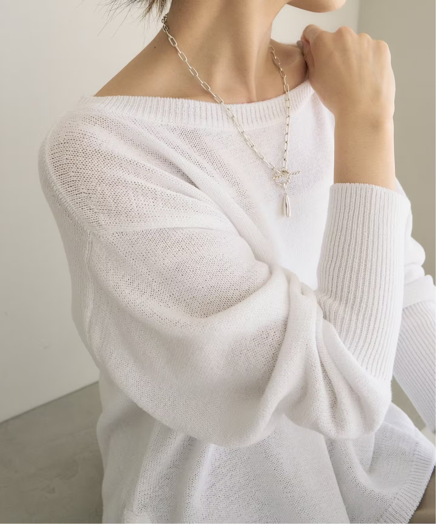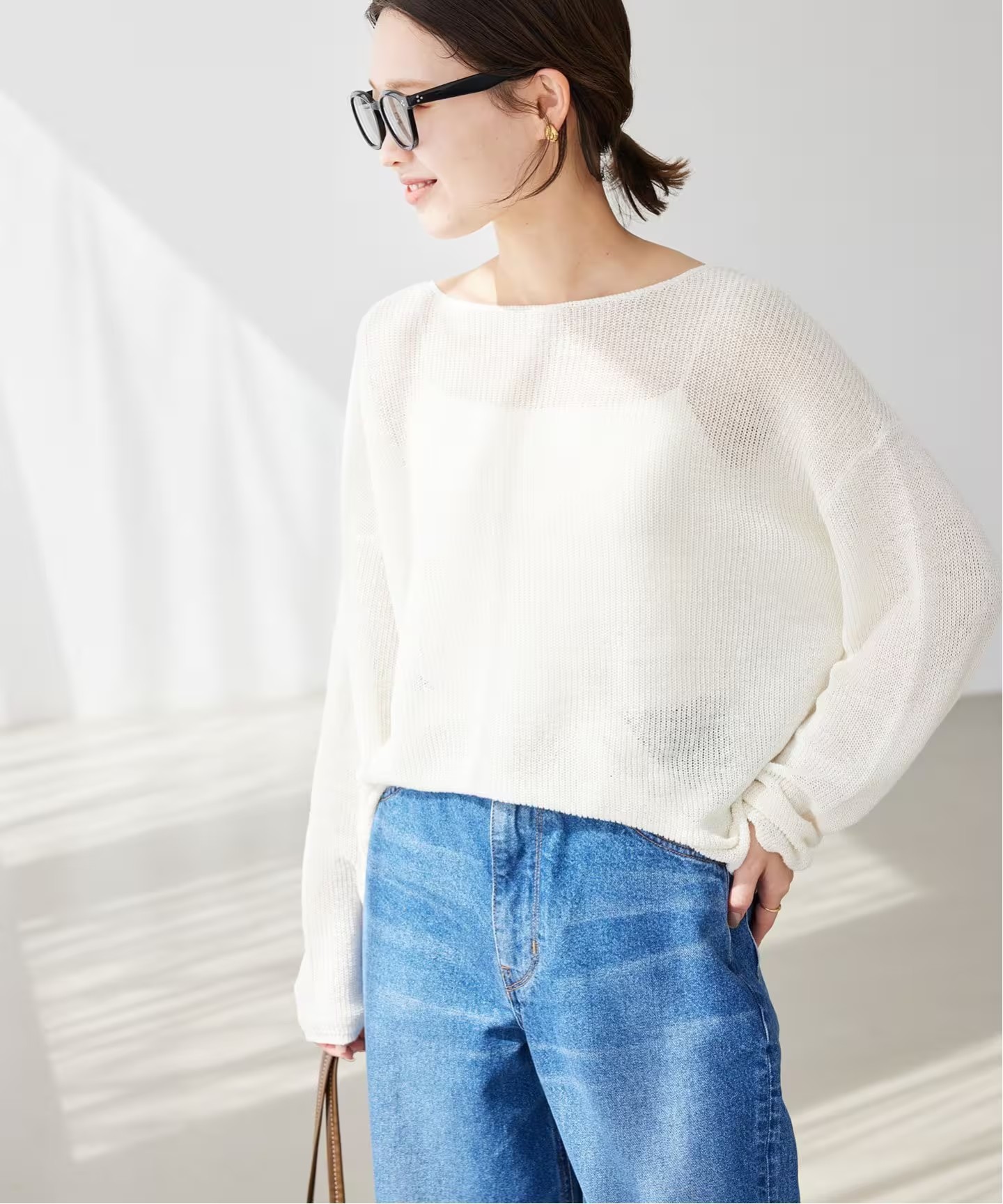 ゆるシルエットな春ニット肌寒い春先に頼れるニットはキレイめなスタイリングにもマッチするから通勤コーデにも◎。清涼感があってこなれたペーパーヤーンニットが狙い目。汗ばむ陽気の日はSLOBE IENAのアイスコットン クルーネックプルオーバーを。