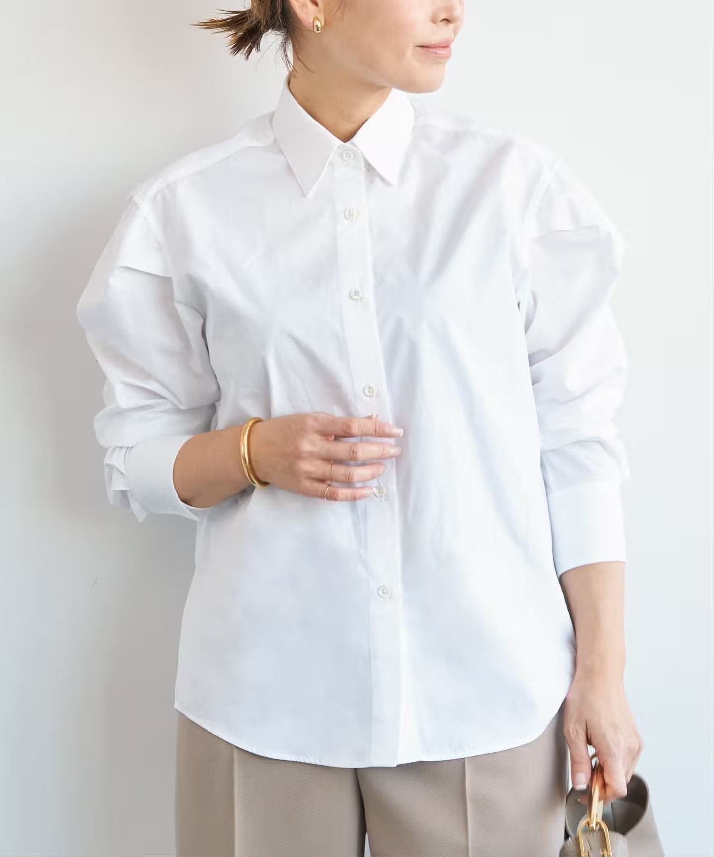 今年らしいバランスにアップデート春から秋まで活躍する汎用性の高い長袖カットソーこそ、旬なバランスに更新が重要。長めのフレアスリーブ&クロップド丈のLe Minor FOR JSショートボーダープルオーバーがお手本。定番のシルエットはシアー素材にアップデートして。