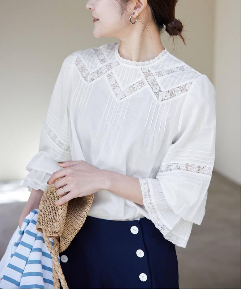 最旬ブラウスがコーデに華を添えるSLOBE IENAのリバーレースブラウスのように、ブラックレースを沈ませず華やかに印象付ける着映えブラウスが続々登場。シンプルなワンツーコーデでも着こなしに変化をつけられて、お洒落感度が急上昇。